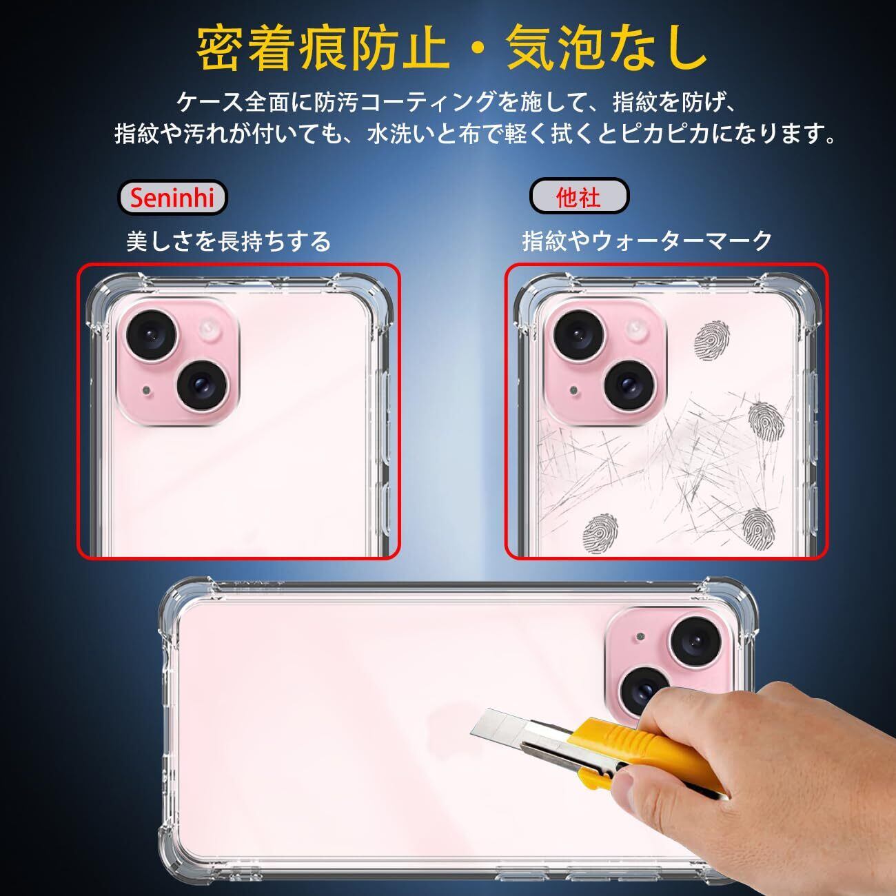 【優れた精度】Apple iPhone15 アイフォン15 いpほね15 ケース 薄くて頑丈で、程よいグリップ感があり、できるだけスマートフォン本体のスリムさを極力損なわないように設計した透明背面ケースです。位置、及び全てのスピーカー、ポート、ボタンを精密に設計しており、充電、及びヘッドフォンで音楽を聴いても機能的な使用を妨げなく、携帯電話に負荷をかけなく、簡単に取り付けることができます。【完全透明・上質な透明感】 超精密な光透過分子を備えて、後ろの光透過率は 99% に達します。後ろのポリカーボネートの耐用性と耐摩耗性が抜群です。本来の美しさや高級感を影響しなく、シルクと全く同じ風合いで、涼しい触る感じがあります。誰にでも適用し、夢中になってしまって触りたくなります。