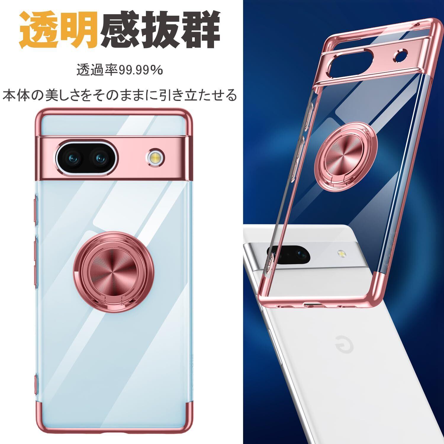 Google Pixel 8a 用 ケース クリア リング付き ピクセル 8a カバー 透明 おしゃれ OURJOY スマホケース メッキ加工 ソフトケース 耐衝撃 軽量 薄型 ストラップホール付き スタンド機能 車載ホルダー対応 携帯ケース・ブラック