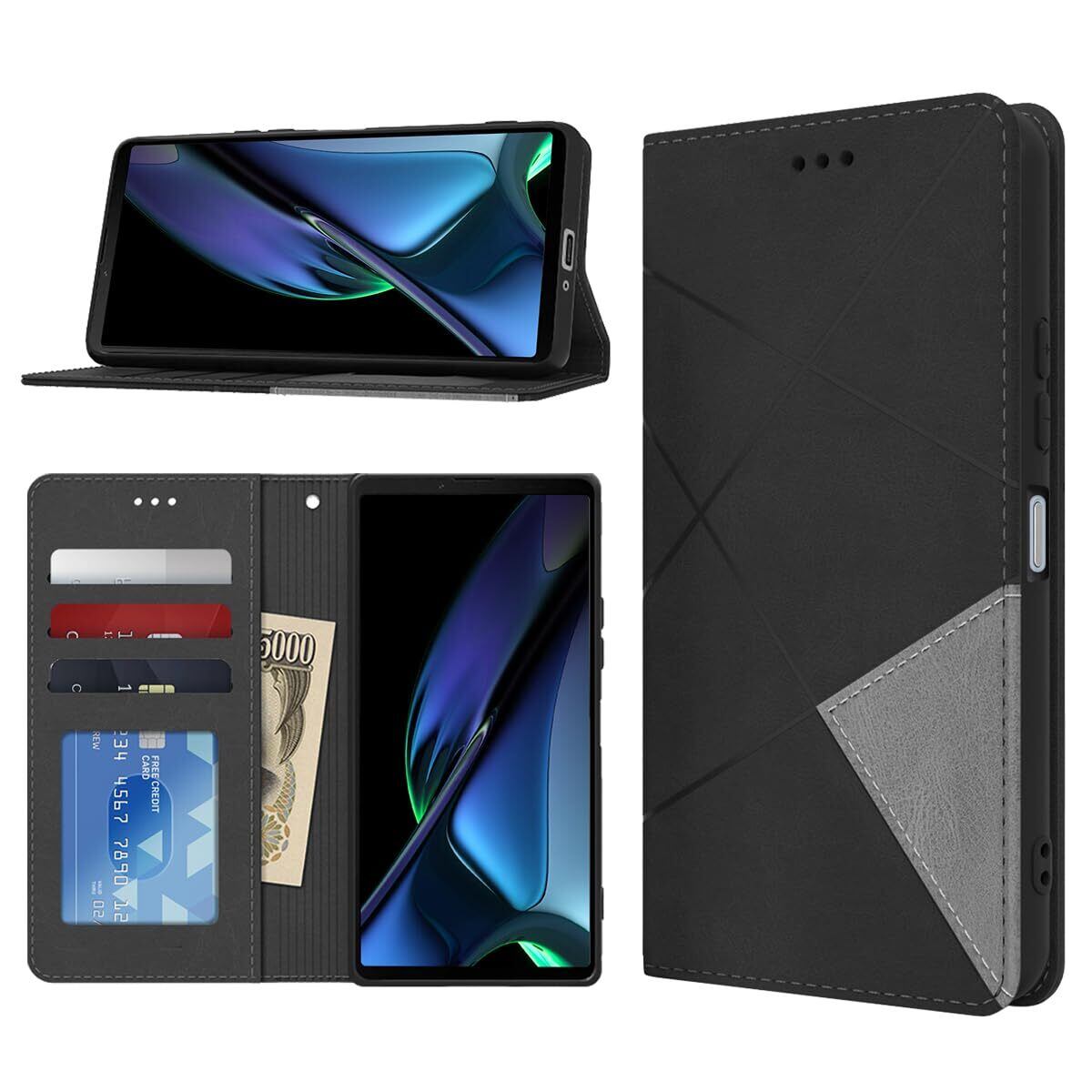 coiwantung Sony Xperia 10 vi 手帳型 ケース 耐衝撃 高级PUレザー エクスペリア 10vi スマホケース 財布型 横置きスタンド機能付 SO-52E SOG14 XQ-ES44 カバー カード収納 全面保護 ラップホール付き のあるソフトタッチ マグネット内蔵 擦り傷防止 ファッション 耐摩擦 シンプル気質 (ブラック)