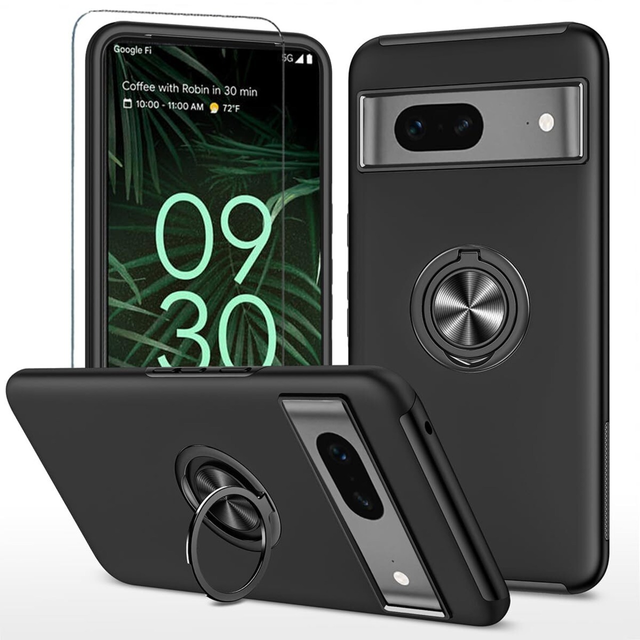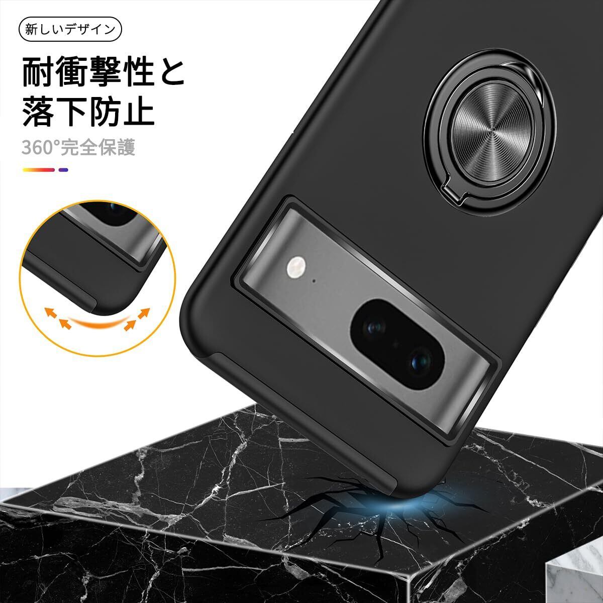 Google Pixel 8 ケース用 Pixel8 スマホケース + グーグル8 强化 ガラス フィルム リング付き スタンド機能 携帯ケース 耐衝撃 衝撃 スマホカバー Case Cover Google 8ケース グーグルピクセル8 ピクセル Eight グーグルgoole8 けース 背面 カバー メンズ(黒 ブラック)