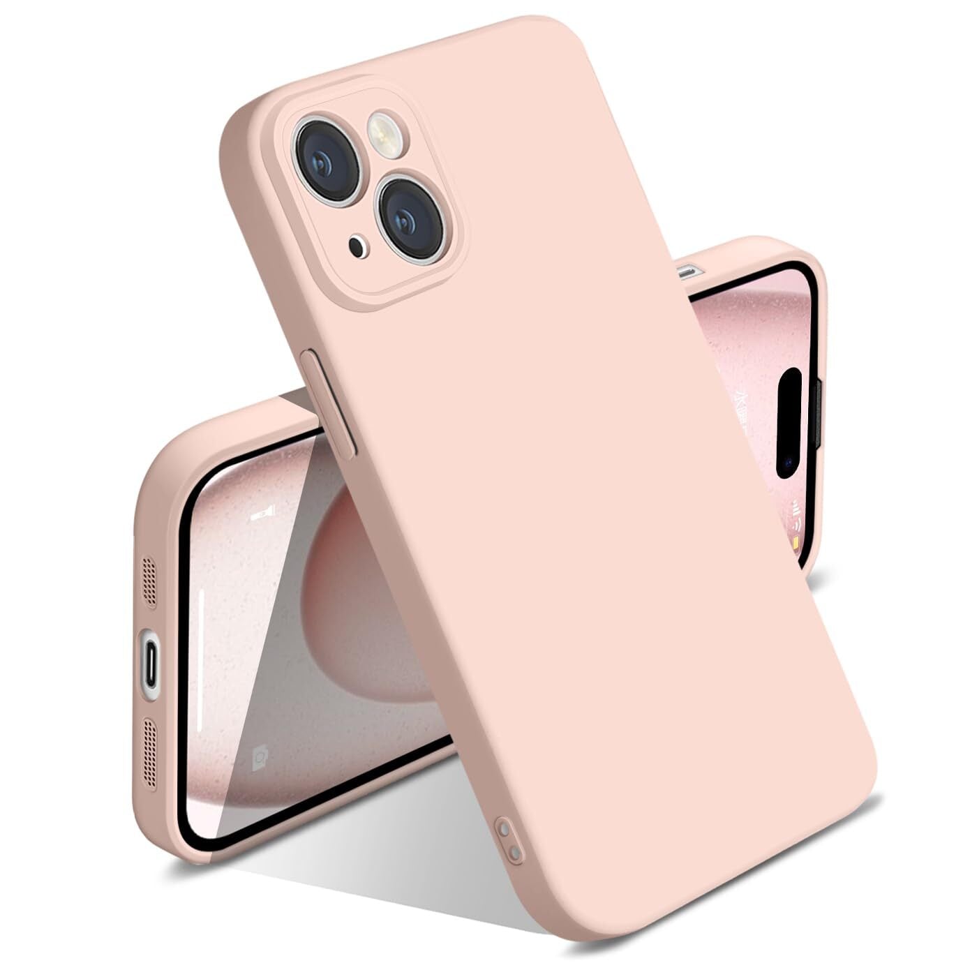 iPhone 15 Plus ケース シリコン 液体シリコン 耐衝撃 iphone15 Plus カバー 米軍MIL規格 薄型 軽量 ソリッドカラー シンプル ストラップホール付き マット感 人気 指紋防止 レンズ保護 ソフト ワイヤレス充電対応 6.7インチ対応(ピンク)