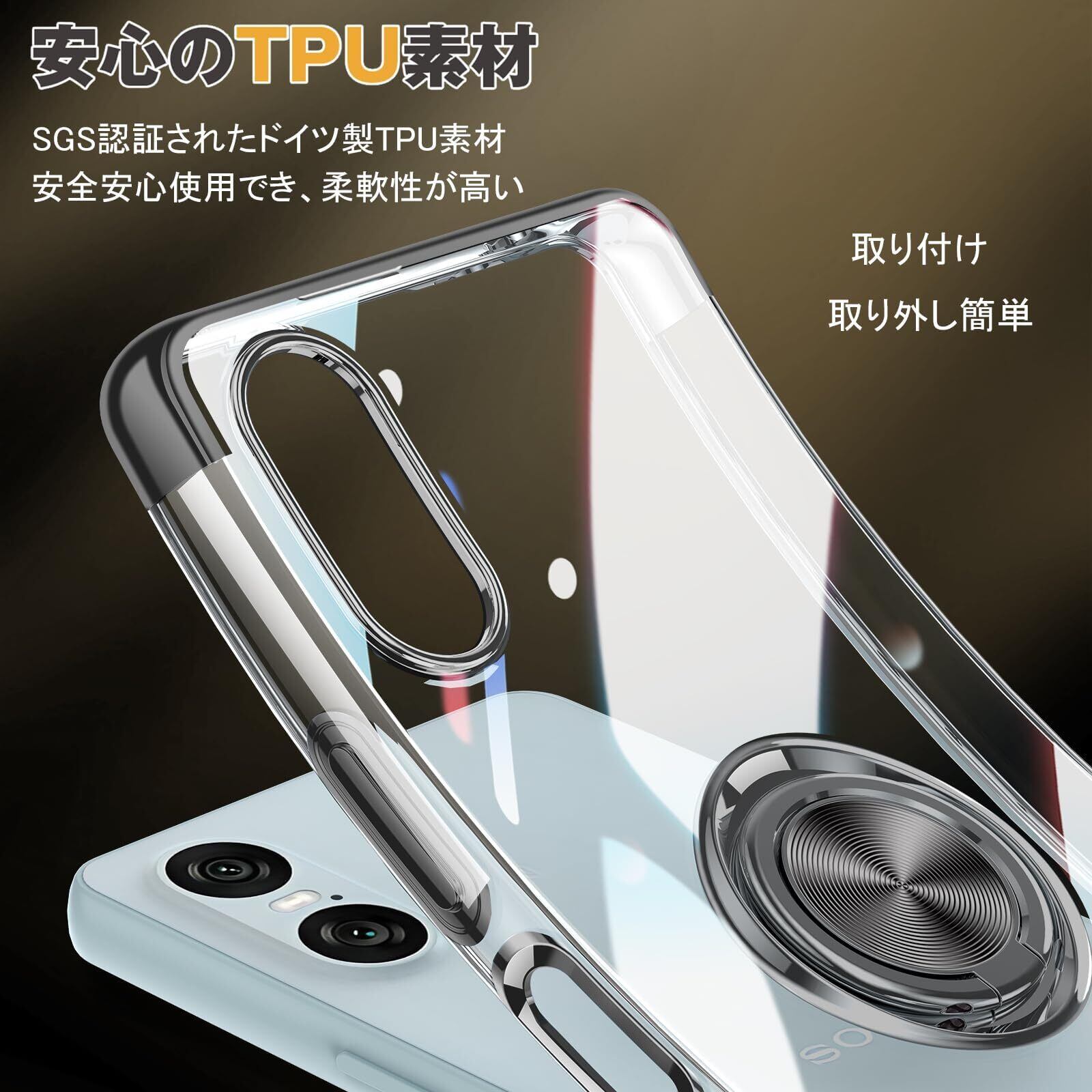 高品質TPU+金属リング、耐久性に優れ、外部からの衝撃を内部に吸収されて、側に滑り止めの設計で、落下を防止できます。