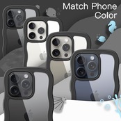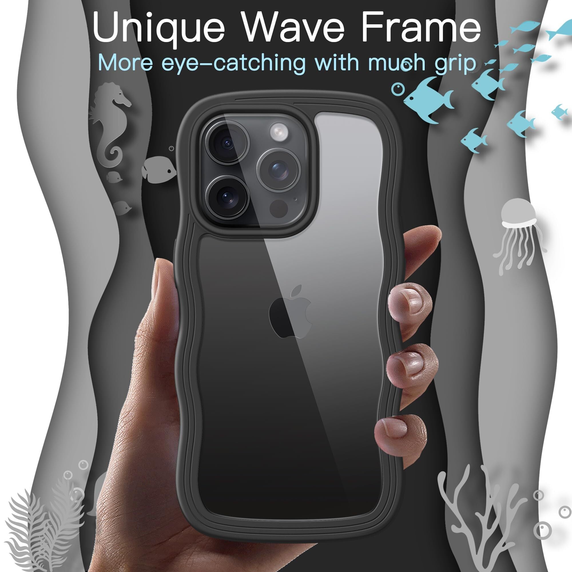 JEDirect iPhone 15 Pro 6.1インチ用 かわいい ケース 波状フレーム うねうね 耐衝撃 スマホカバー 女性用 女子向け クリア ハードPCバック