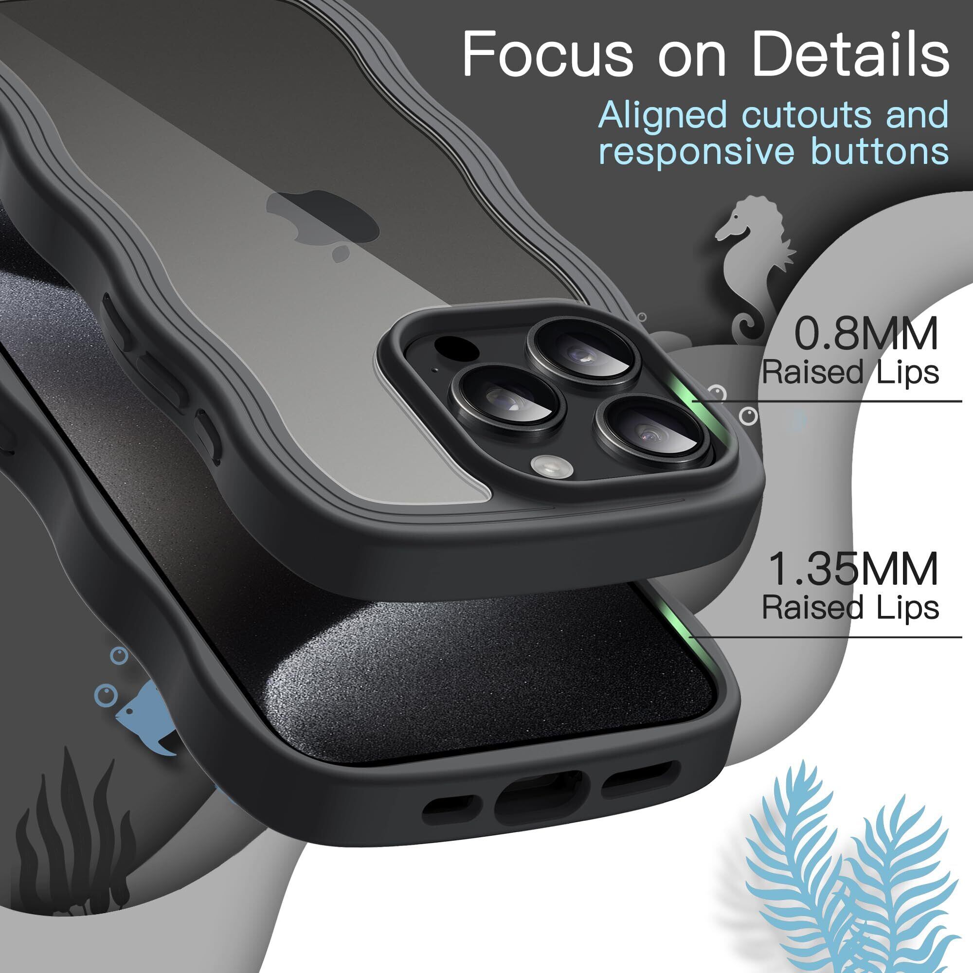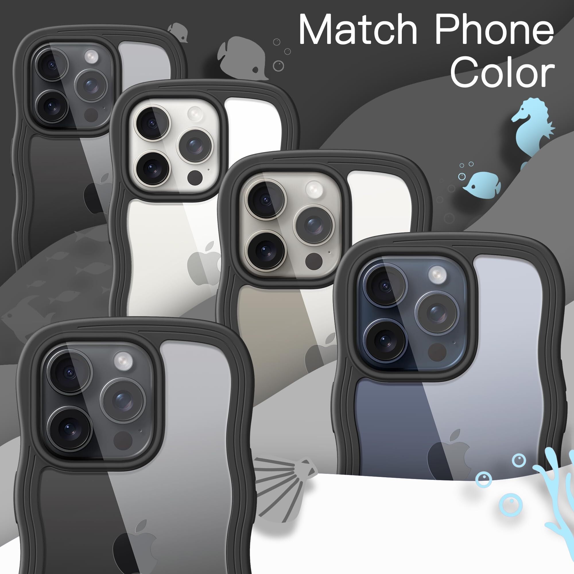 JEDirect iPhone 15 Pro 6.1インチ用 かわいい ケース 波状フレーム うねうね 耐衝撃 スマホカバー 女性用 女子向け クリア ハードPCバック (ブラックチタニウム)