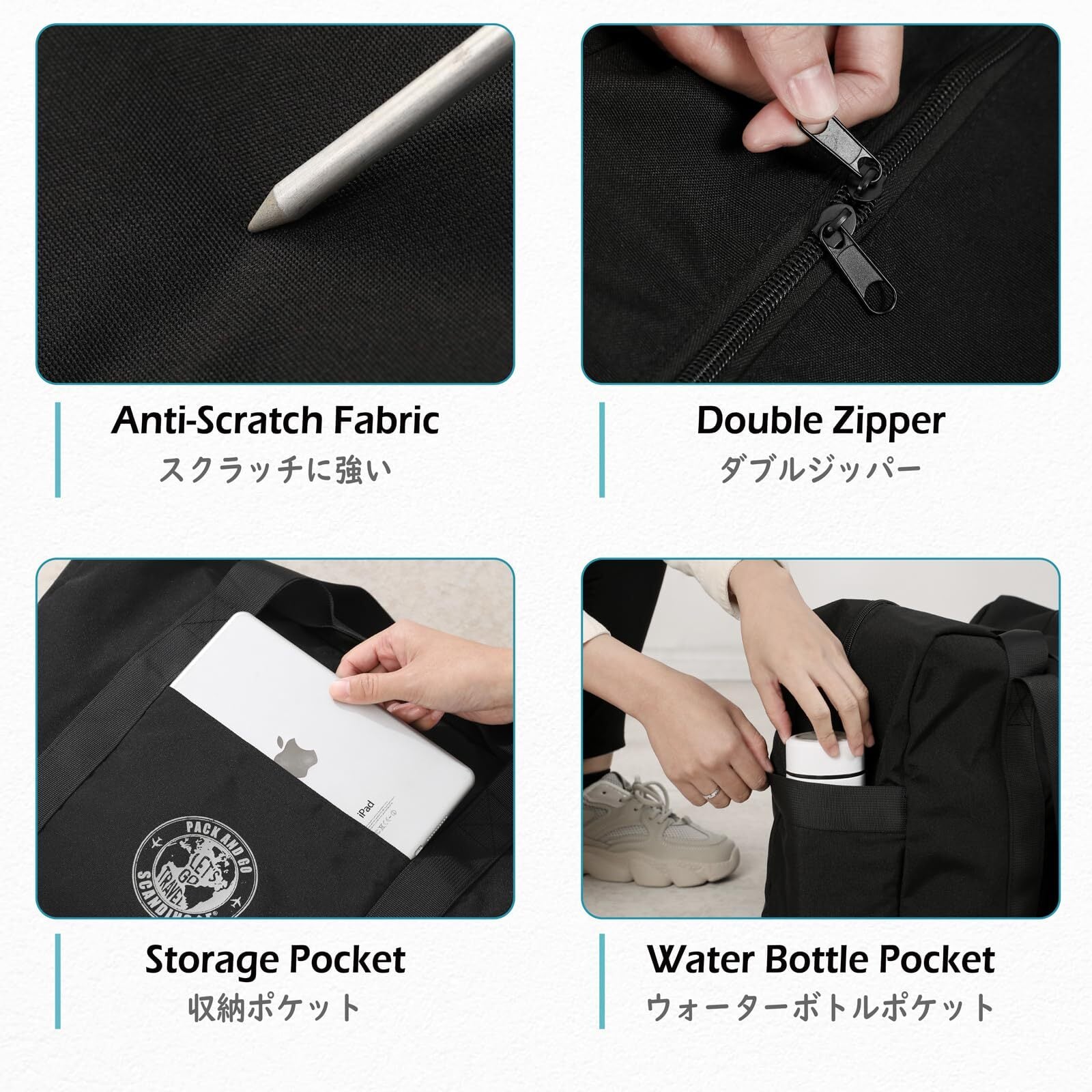 【優れた収納力】- 内部には8つの収納ポケットがあり、大容量ながらも整理しやすく、耐荷重性もバッチリ。スーツケースの持ち手にも通せる折りたたみ式で、出張や合宿使いに最適です