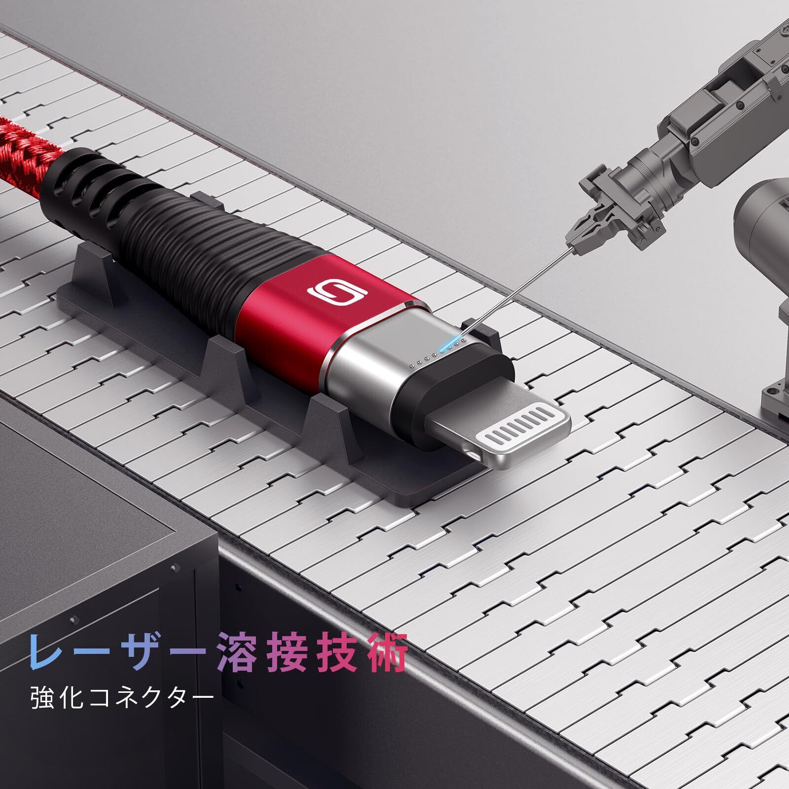 【高品質ナイロンで耐久性UP】iPhone 充電ケーブルは一般的なケーブルより30倍以上の耐久性をもち、15000回以上のイトニングケーブルの曲折テストにたえて、耐久性にとても優れております。