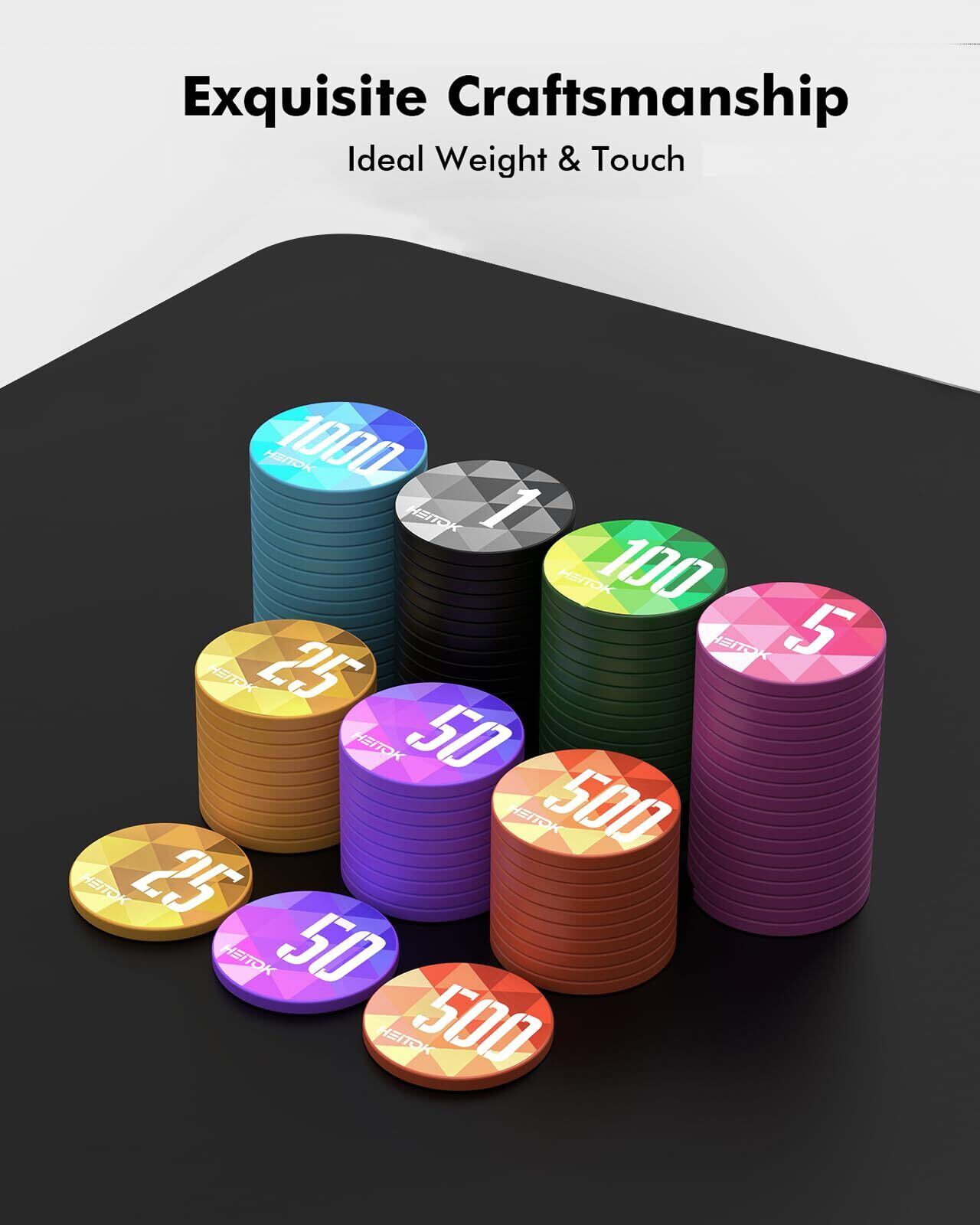 HEITOK ポーカーチップ ポーカーセット 500枚 数字入り 11.5g カジノチップ トランプ2組とサイコロ5個が付属 ABS製チップ アルミ製スーツケース入り