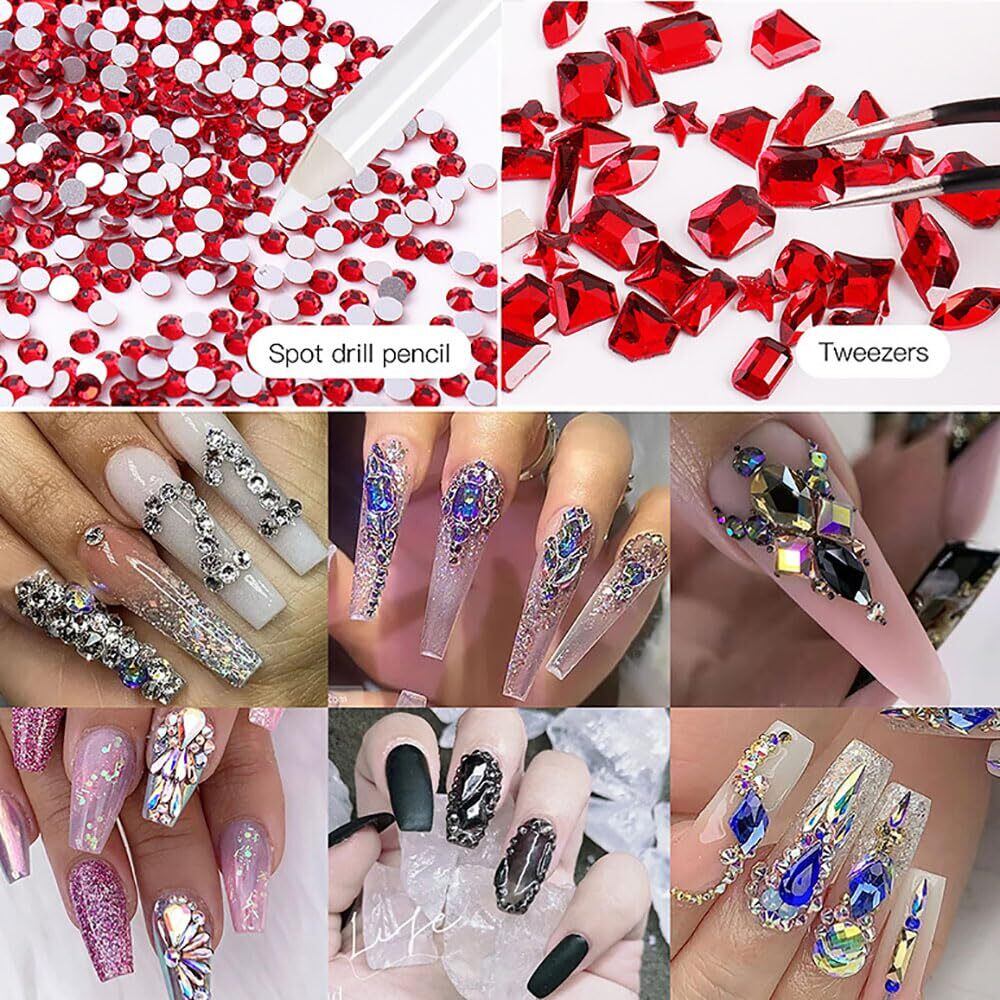 【使いやすい】-ピンセットとネイルアート用クレヨン付き。爪の宝石は、自然または人工の爪に簡単に適用できます。
