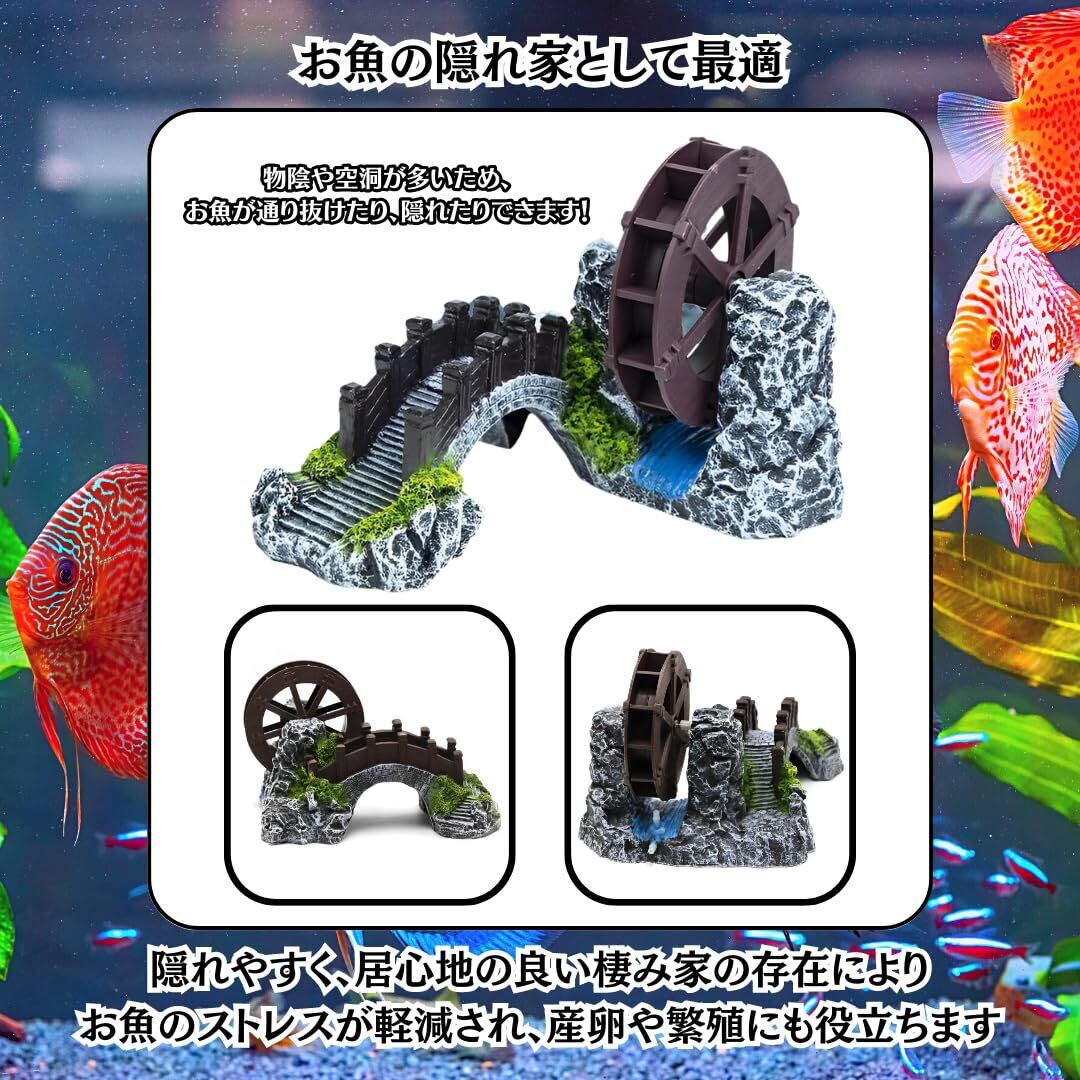 Charmoon アクアリウム 太鼓橋 水車 回る 和風 隠れ家 シェルター リアル 水槽 オブジェ