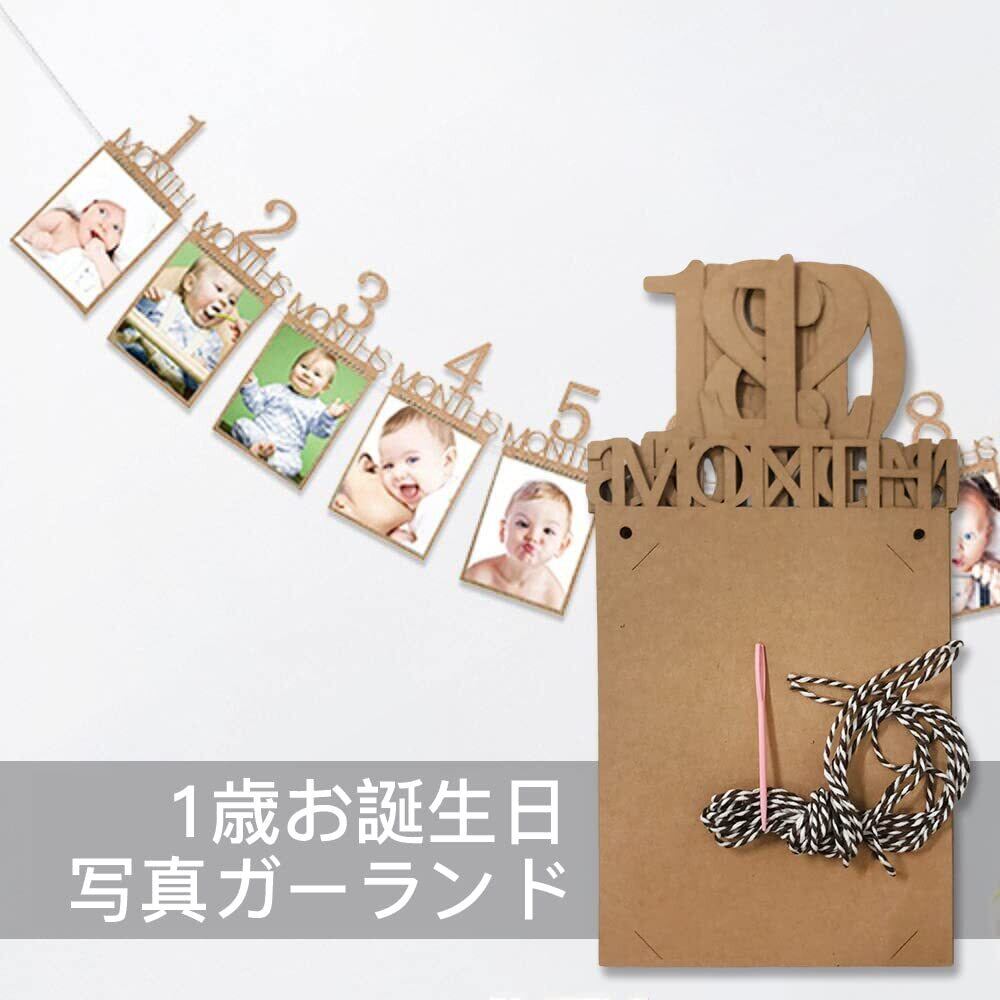 LOYELEY 12ヶ月 誕生日 写真 ガーランド 飾り付け フォトフレーム 1歳 赤ちゃん バースディ パーティー お祝い 壁掛け 装飾 飾り フォトガーランド 写真フレーム 写真立て 記念日 結婚式