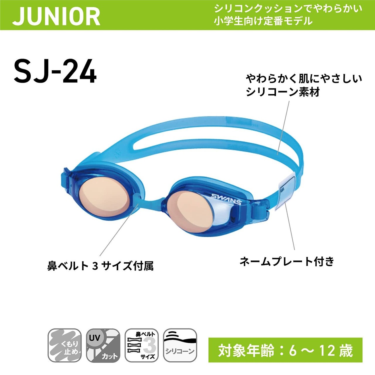 SWANS(スワンズ) 日本製 スイミングゴーグル SJ-24 子供用 6歳~12歳 UVカット ネームプレート付き シリコーンクッション