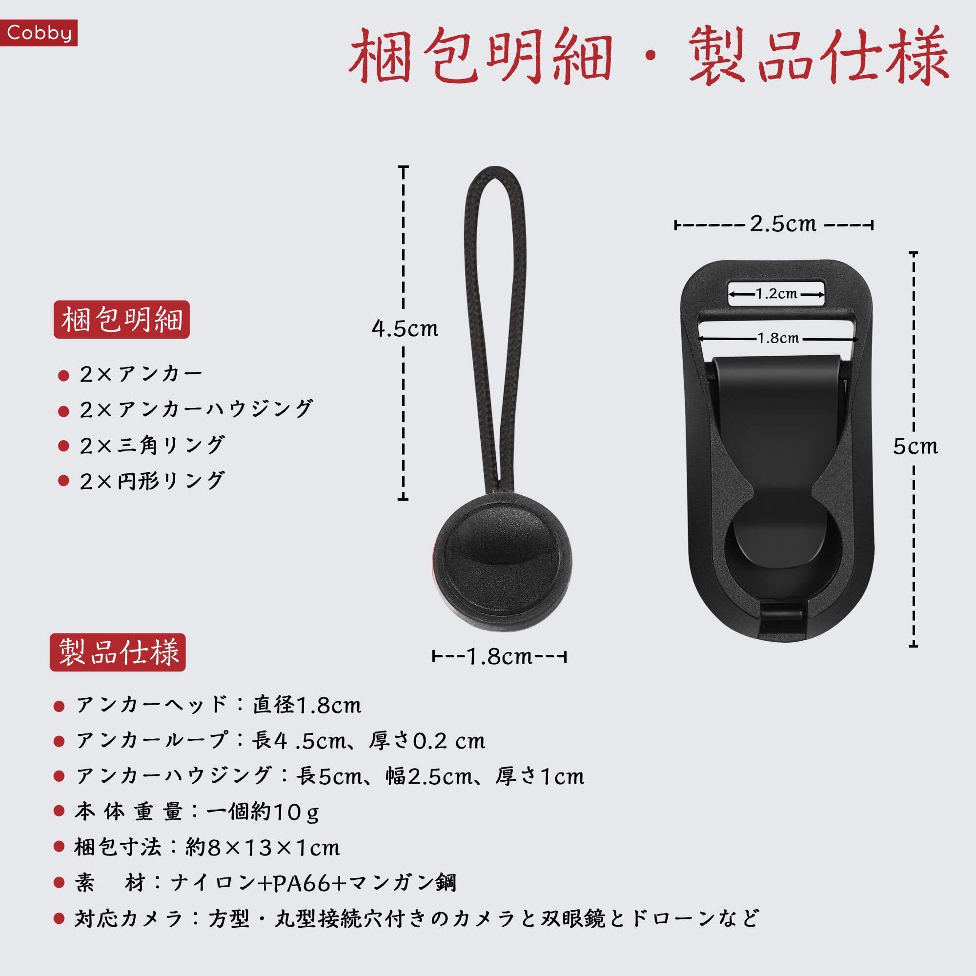 [Cobby] アンカーリンクス ストラップアダプター 三角リング付 カメラ・双眼鏡に汎用 黒 (2枚セット)