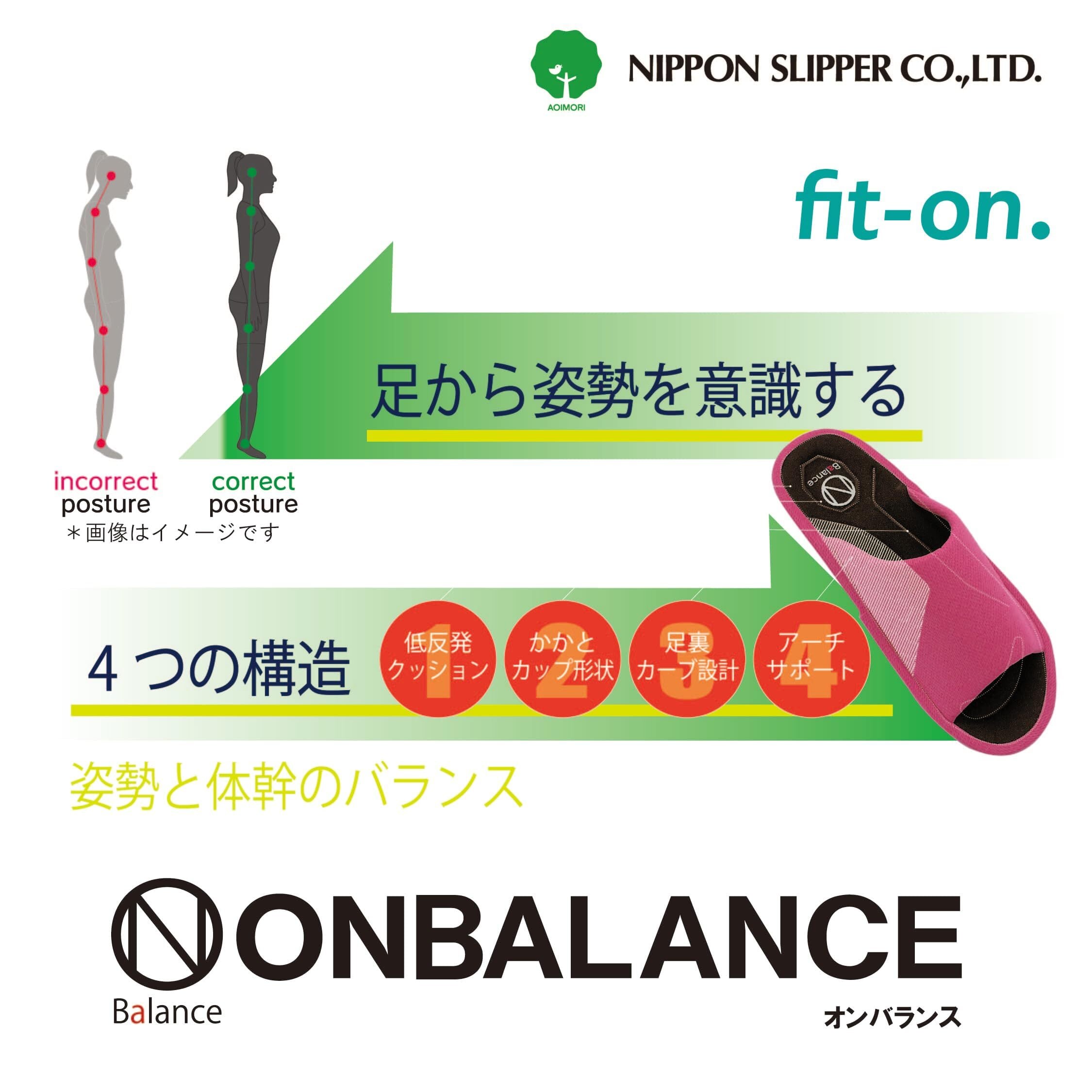 ニッポンスリッパ 足から姿勢を意識する オンバランス 足裏カーブ設計でアーチサポート 低反発クッション オフィスや室内で 22-24cm ピンク 健康スリッパ ルームシューズ メンズ レディース 室内履き 拖鞋 042521