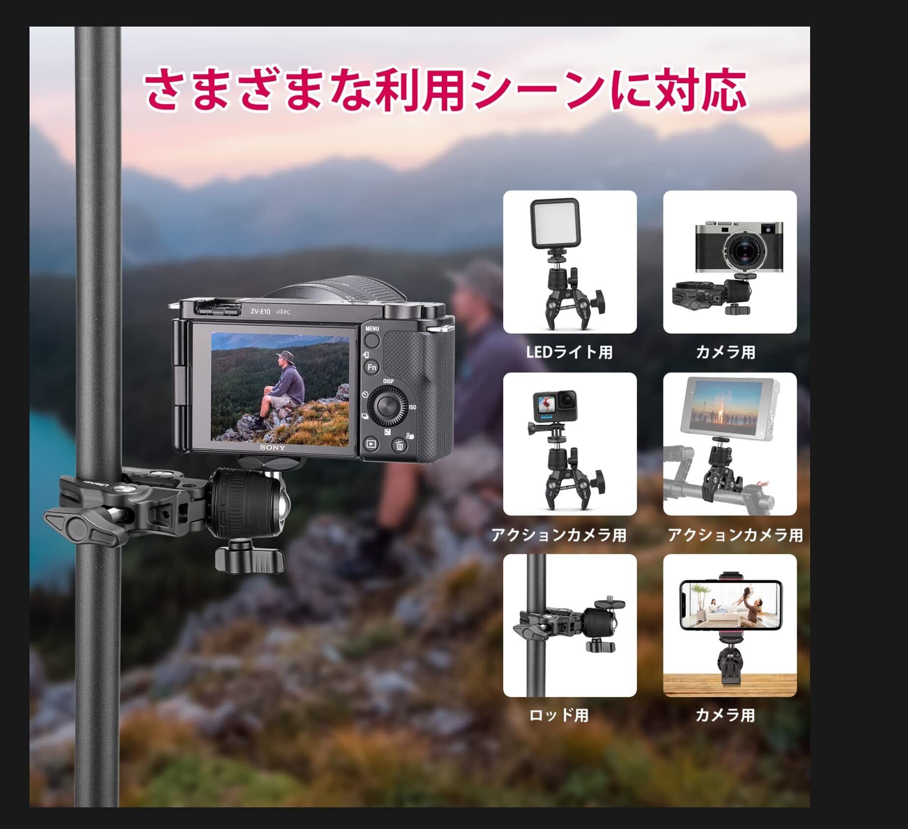 Ulanzi スーパークランプ 360°雲台 カメラマウント 1/4ネジ カメラホルダー Gopro用 緩み防止 蟹バサミクランプ モニターサポート/液晶モニター/アクションカメラ/一眼レフ/自転車・バイク・Goproに対応
