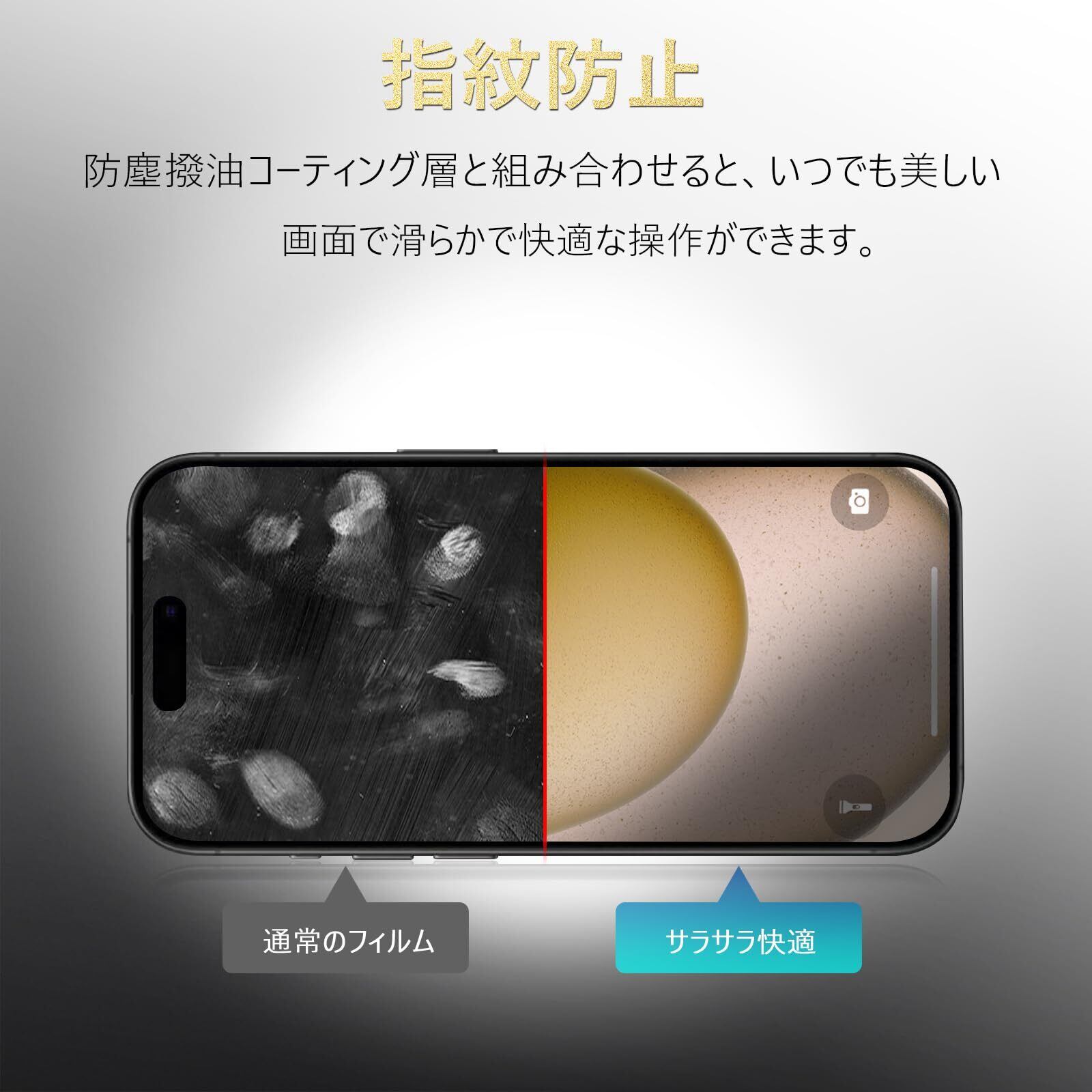 iPhone 15 ガラスフィルム アンチグレア 【2+2枚】 いPhone15 フィルム さらさら アイフォン15 保護フィルム サラサラ 15 用 強化ガラス 画面 保護 シート 【指紋防止/ゲーム/マット/反射防止/滑り】 iPhone15 カメラフィルム 付き