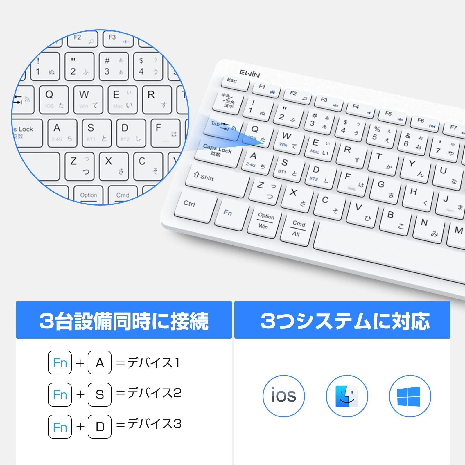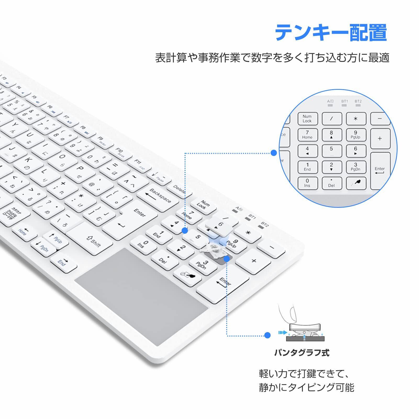 Ewin Bluetooth/USB 無線両対応キーボード 2.4Ghz接続 タッチパッド付き 日本語配列 ワイヤレスキーボード 3つシステム対応 3台デバイス切り替え レシーバー付き 電池式 iPad パソコン タブレット スマホ用 Windows Mac iOS対応 テレワーク ホワイト