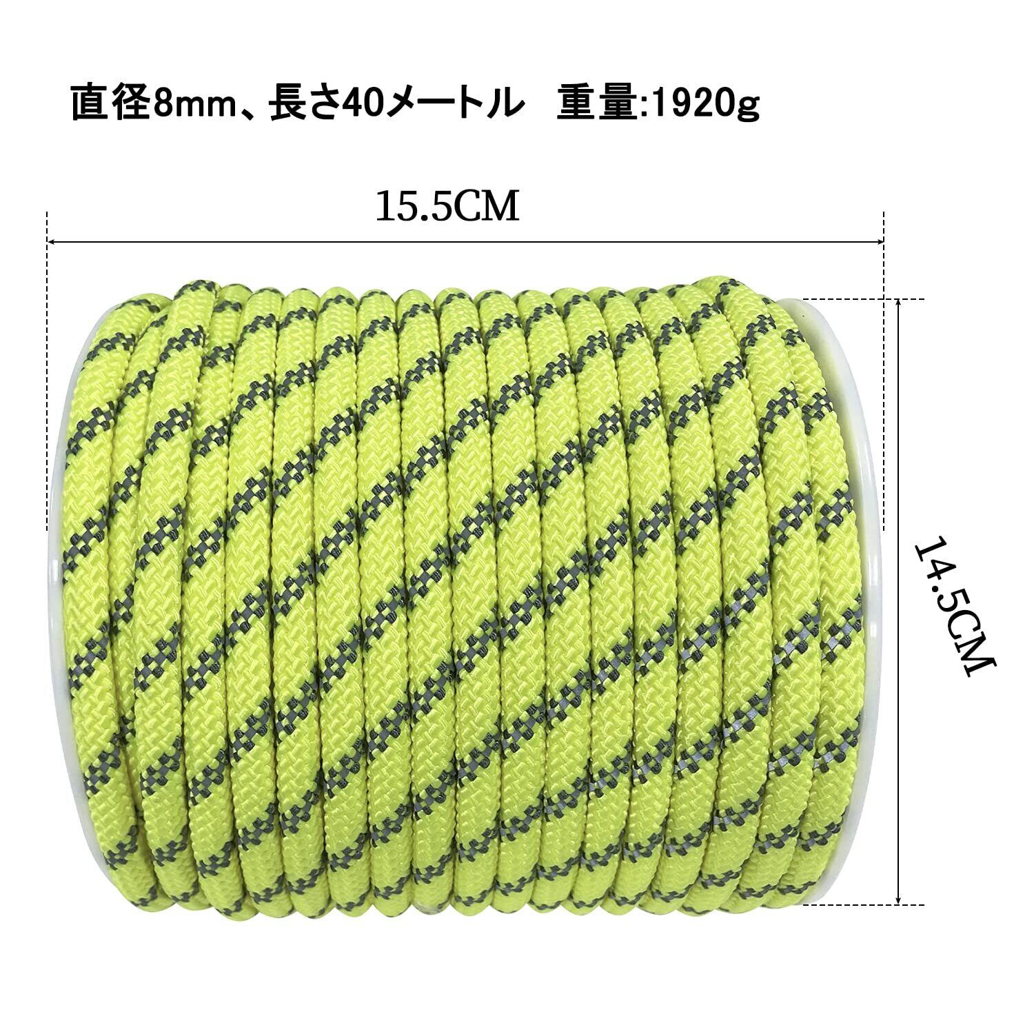 【特徴】高強度ロープの直径は8mmで、耐荷重は2000kgです。重い荷物などを引っ張り上げても切れないです。反射材:反射糸を編みこんでいるので、ライトなどを照らすと反射します 、わずかな光しかないところでの視認性を高めます、夜でも視認性がいいので、夜間のキャンプ場ではテン トやタープの張り綱に足を引っ掛け転倒したり、更に見やすく安全性が格段に向上します。40メートルの長さで、様々な場合に合わせて活用いただけます。