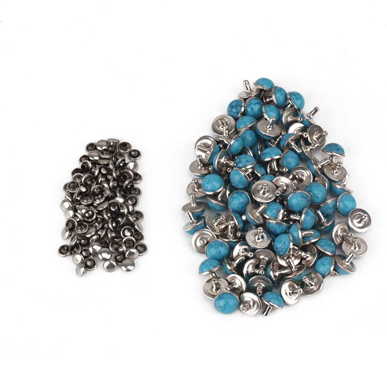 SHANOER 100個入れ カシメ スタッズ レザークラフト ターコイズ リベット 10mmx11mm ブルー
