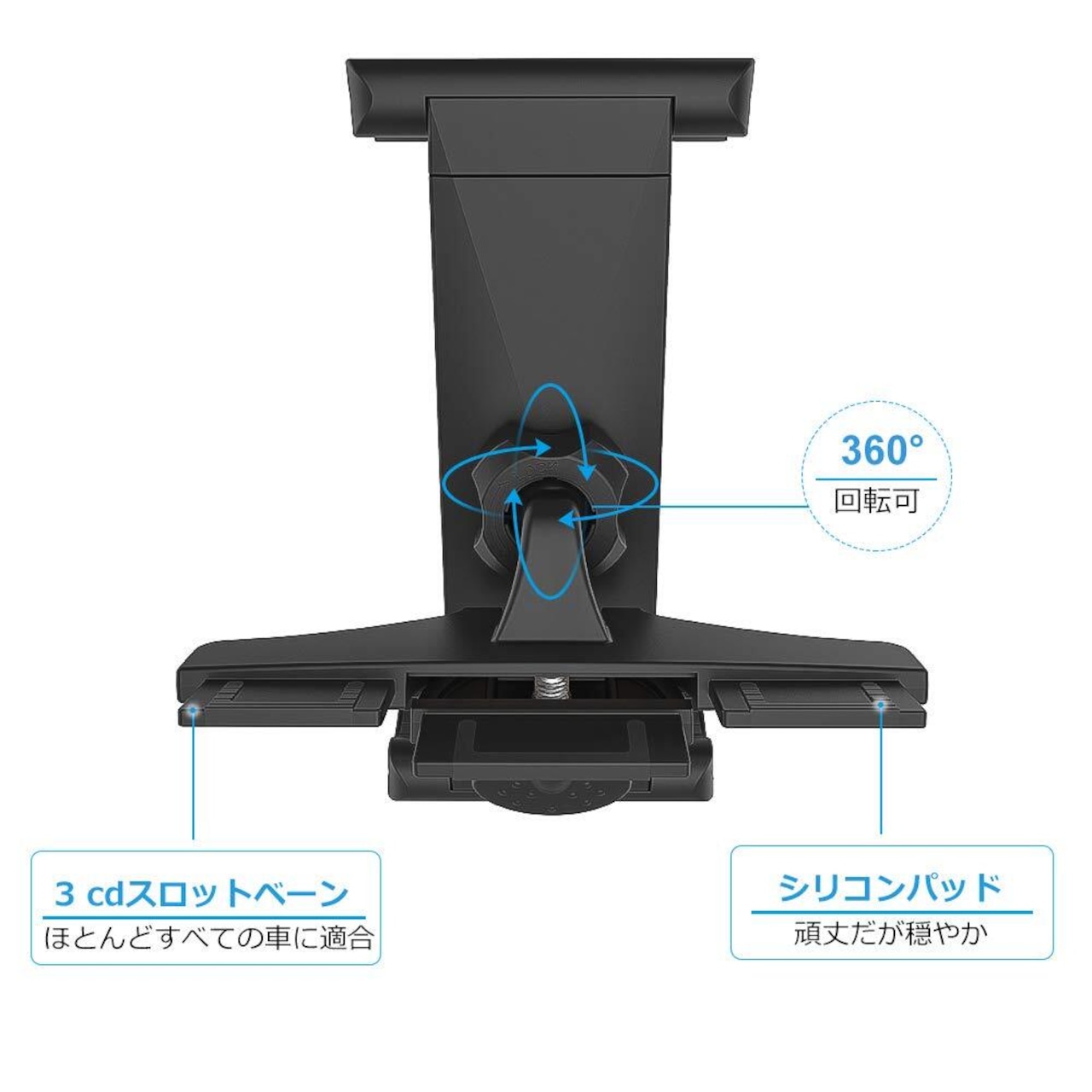 EXSHOW CDスロットかーマウント iPad車載ホルダー 車CDプレーヤー取り付けタブレットホルダー 片手で操作 360度回転可 iPad Pro 12.9 11 10.5, iPad Air 5 4 3 2 1, iPad mini 5 4 3 2 1, Samsung Galaxy Tabs など7-12.9インチタブレット向き