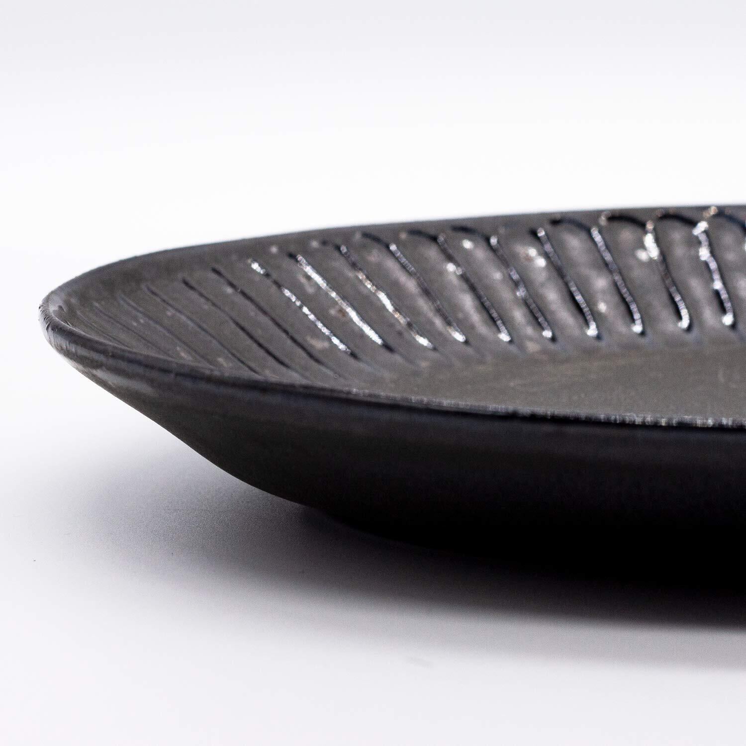 美濃焼 「 SHINOGI 」 オーバル プレート 皿 カレー & パスタ ブラック 直径約25cm しのぎ 楕円 黒 一洋陶苑 電子レンジ対応 日本製 513-0005