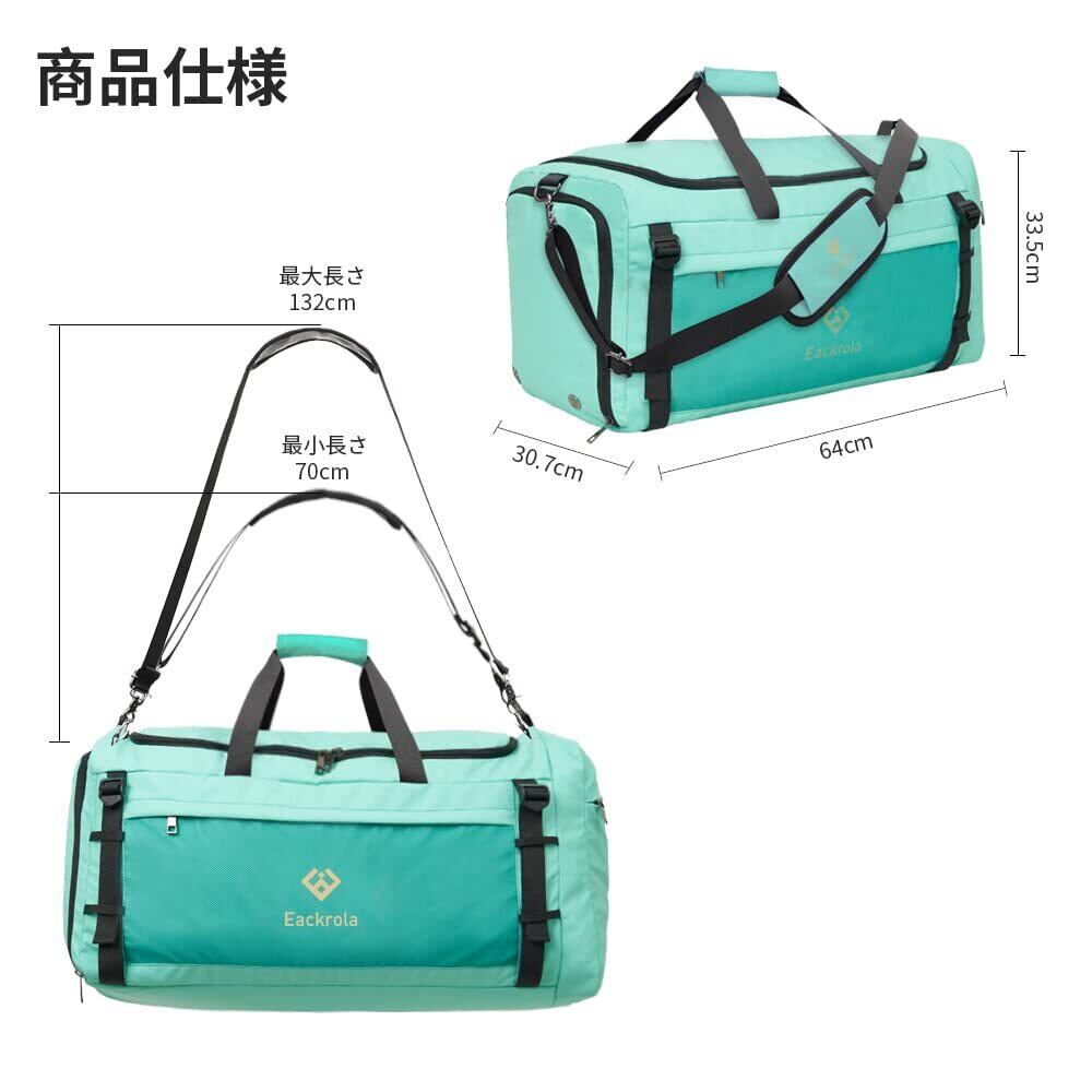 Eackrola スポーツバッグ メンズ ジムバッグ ダッフルバッグ 大容量 修学旅行 ジムバック ボストンバッグ 防水 超軽量 修学旅行 機内持込 旅行バッグ 林間学校 男女兼用 65L (エメラルドグリーン)