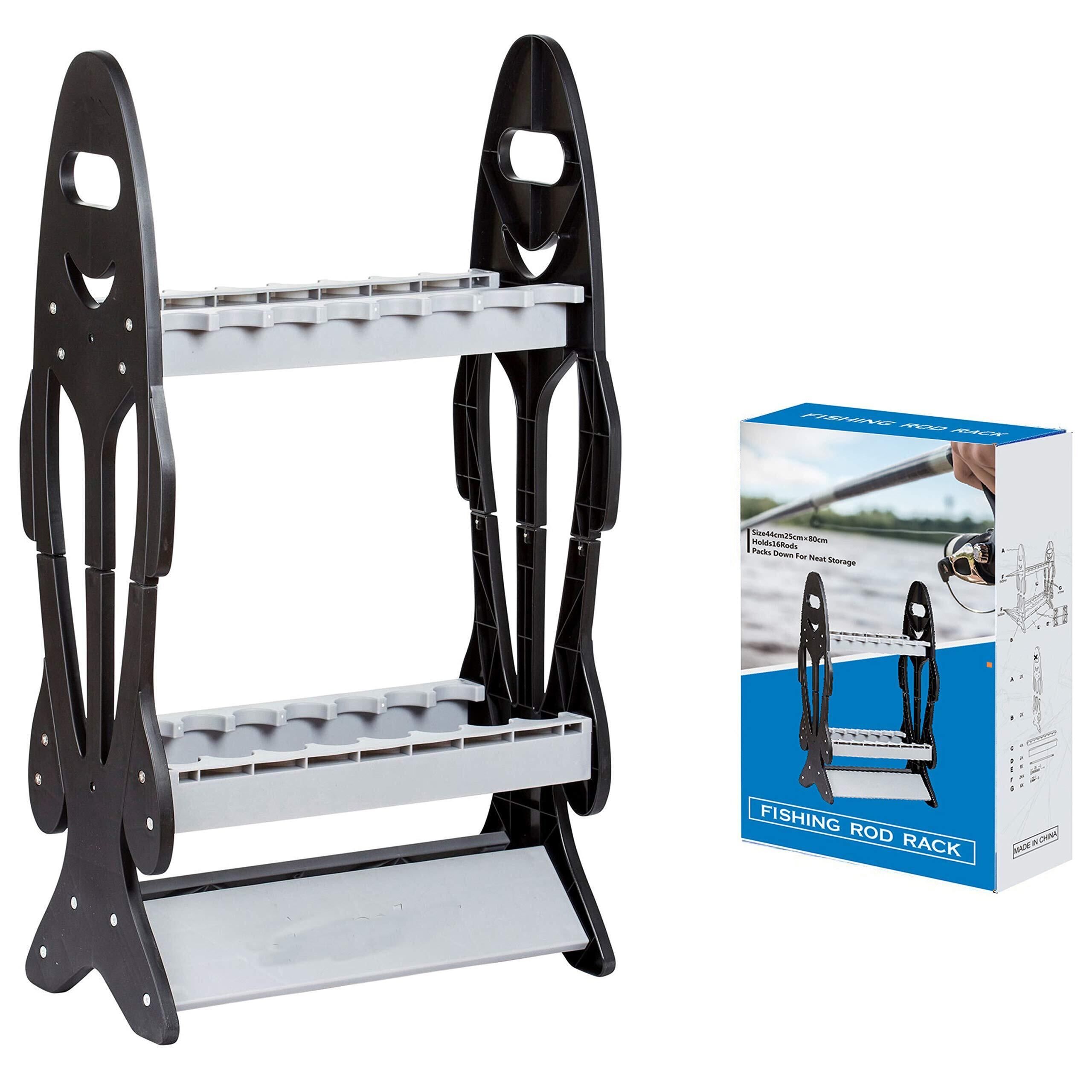 BQKOZFIN プラスチック ロッドスタンド 16本 釣り竿用 釣り竿ラック ポール マウントラック インストールロッドホルダー 組立式 フィッシング ロッド 屋外 屋内