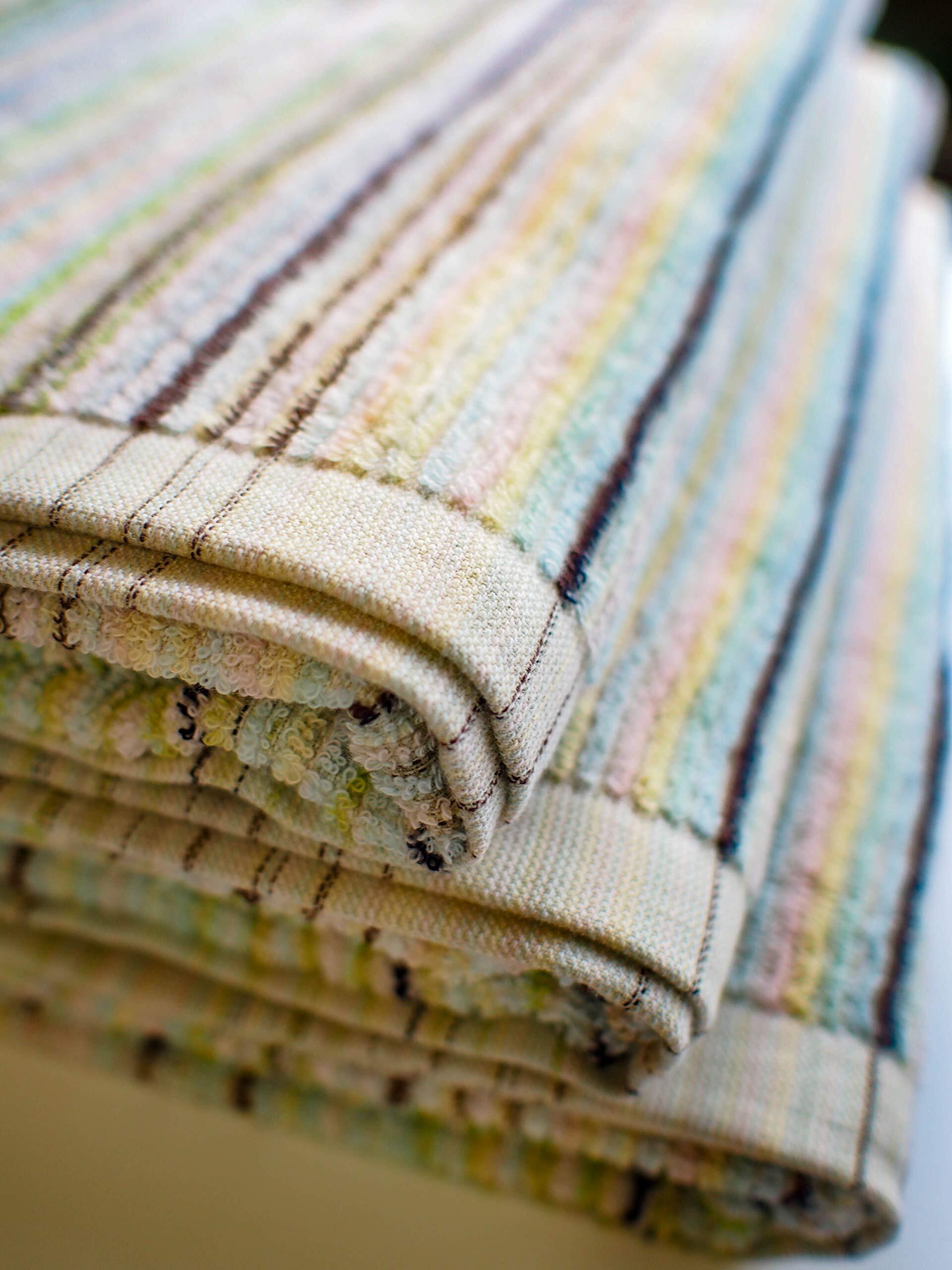【reTOWELとは】タオルの本場今治の工場で織り余った糸を再利用し、今治の職人が使い易さとお手軽さを考えて作った、環境に考慮した日常使いのタオルです。