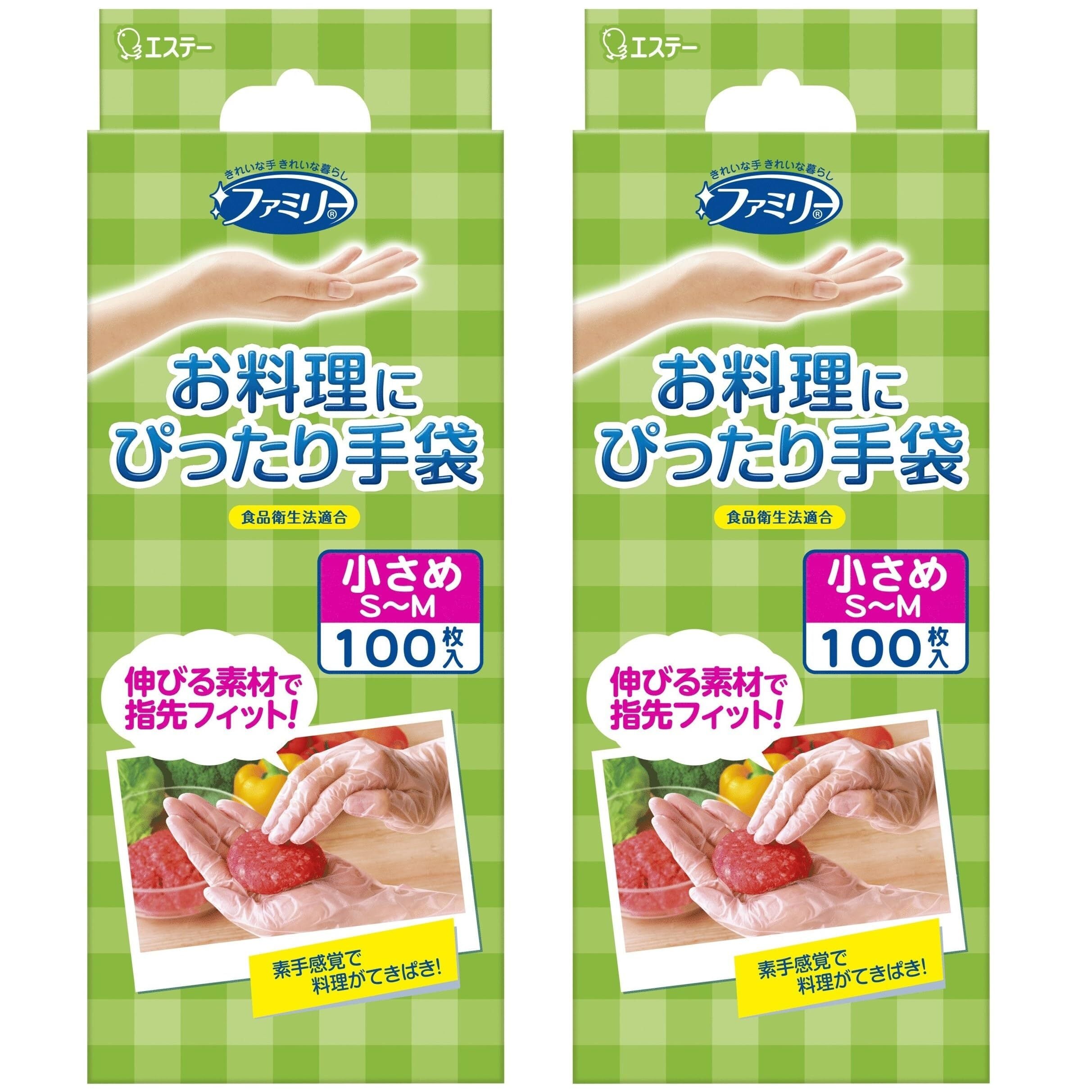 ファミリー [まとめ買い] 家庭用手袋 お料理にぴったり 手袋 小さめ S~Mサイズ 半透明 100枚×2個 左右両用タイプ 調理 掃除 毛染め 使い捨て (食品衛生法適合)