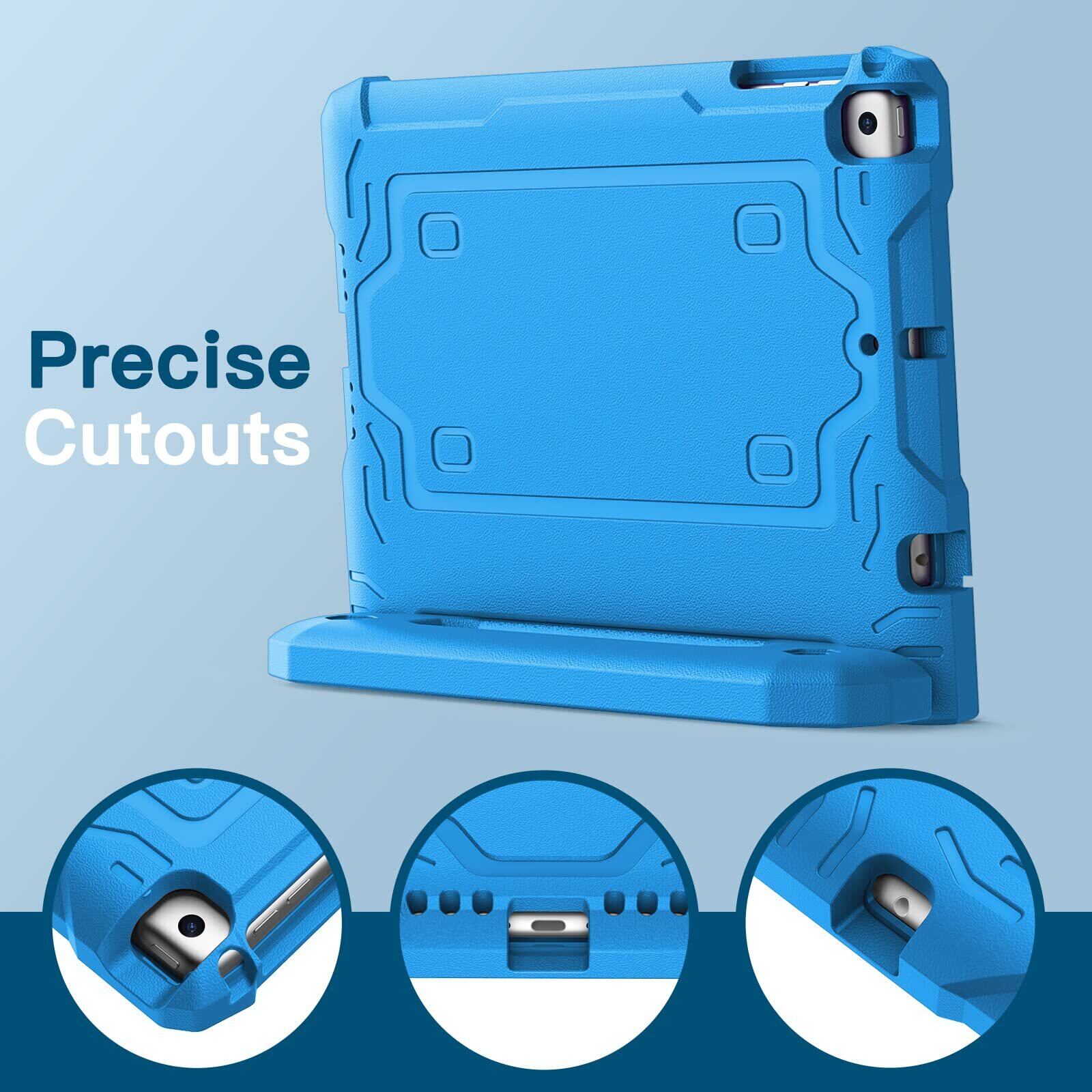 JEDirect 子供用 iPad 9.7インチ ケース (第6/5世代、2018/2017モデル) 液晶保護フィルム付き 耐衝撃 フルボディハンドルスタンド タブレット保護カバー (ブルー)