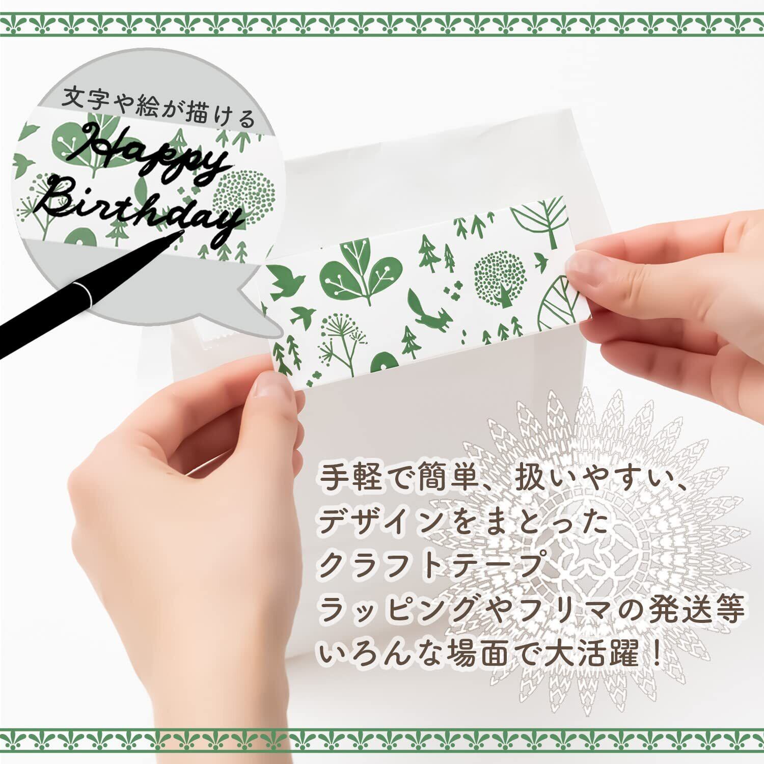 カラー:グリーンフォレスト クラフト素材のお洒落なテープ。テープ表面に光沢があり重ね貼りができる。油性ペンで文字が書ける。紙製なので手で切れる。ラッピングに。宅配便、小包などの荷造り包装に。オークションやフリマの発送に。梱包だけではなく、空き箱のリメイクにも最適。(※ノルデックサークル柄は、上下で柄は繋がらないため、ご注意ください。)