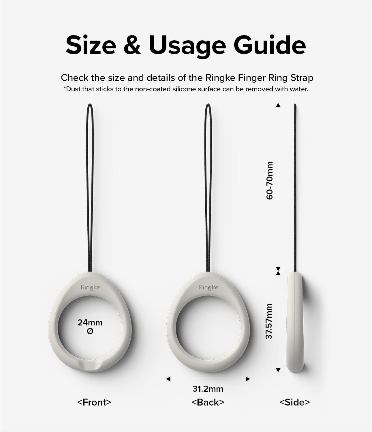 【Ringke】FINGER RING STRAP 携帯 落下防水 紛失防止 携帯ストラップ フィンガー ストラップ フィンガーストラップ スマホ スマホストラップ スマートフォンストラップ - Black & Light Gray