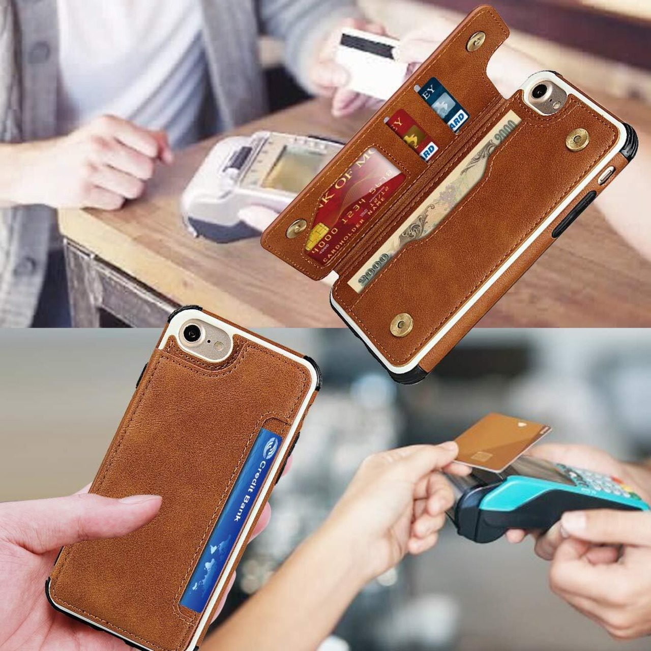 Pelanty iPhone SE 2022 第3世代/ SE 2020 第2世代 ケース iPhone7/ iPhone8 ケース手帳型 iPhone6/iPhone6s ケース 縄掛け ケース 通用 4.7インチ 背面 手帳型 PUレザー IC カード収納 軽量 スタンド機能 ボタン磁気 多機能 アイフォンSE2/SE3/7/8/6/6s スマホケース 耐衝撃 滑り防止 全面保護 ストラップ 携帯カバー [5色選択]ブラウン
