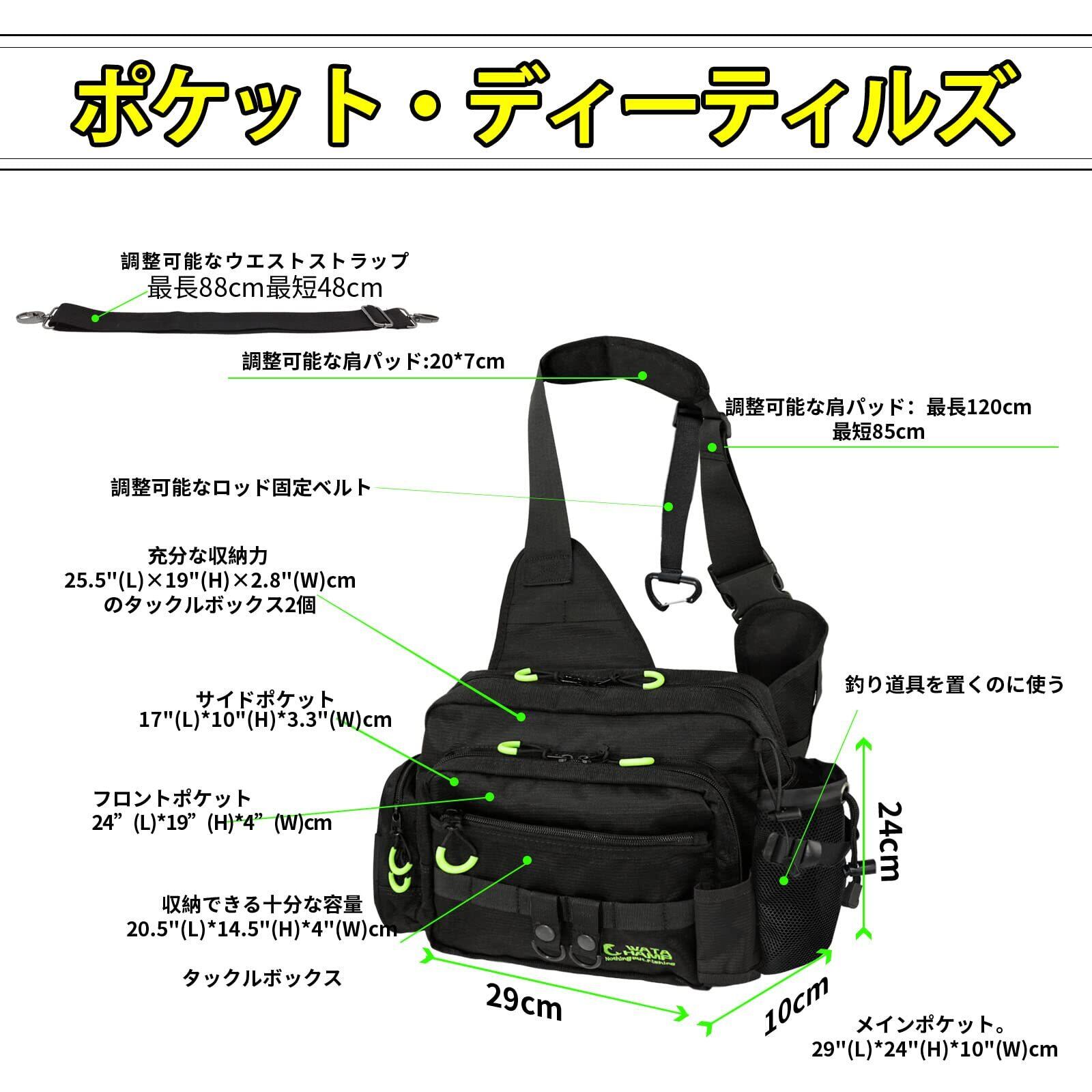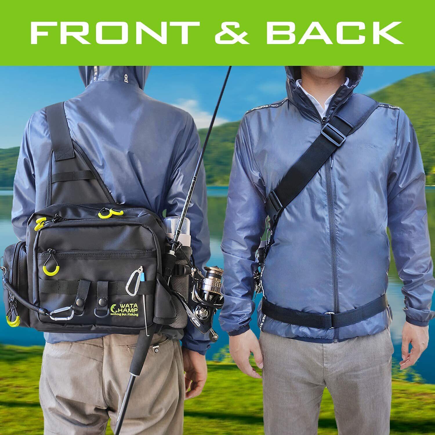 WATACHAMP【ワタチャンプ】釣り バッグ フィッシングバッグ 防水 5つカラビナ付き ダブルファスナー 可動式肩パッド 着脱式ウエストベルト タックルバッグ 多機能 大容量 釣り ショルダーバッグ 【 カモしろい カモグリーン カモカーキ カモインク カモシアン 】