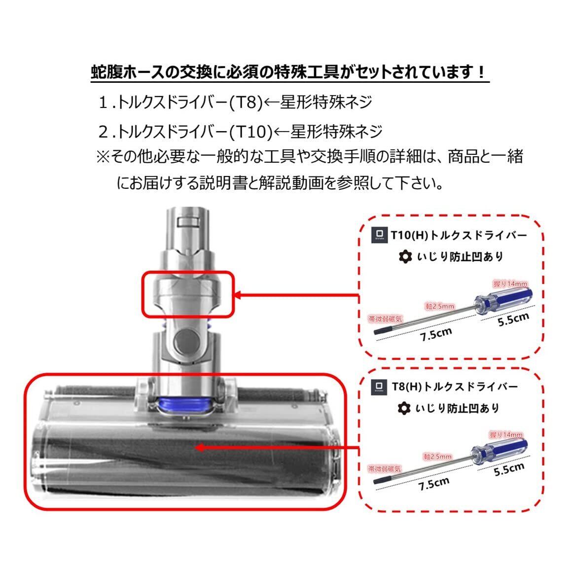 Charming Crew GIZLABO ダイソン ソフトローラークリーナーヘッド 用 蛇腹 ホース トルクスドライバー T8 T10 2本 セット 交換方法 解説 動画 リンクあり V6 V7 V8 V10 V11 ソフトローラークリーナーヘッドの 蛇腹ホース と互換性のある 修理 交換部品 分解 組立 掃除機 お手入れ