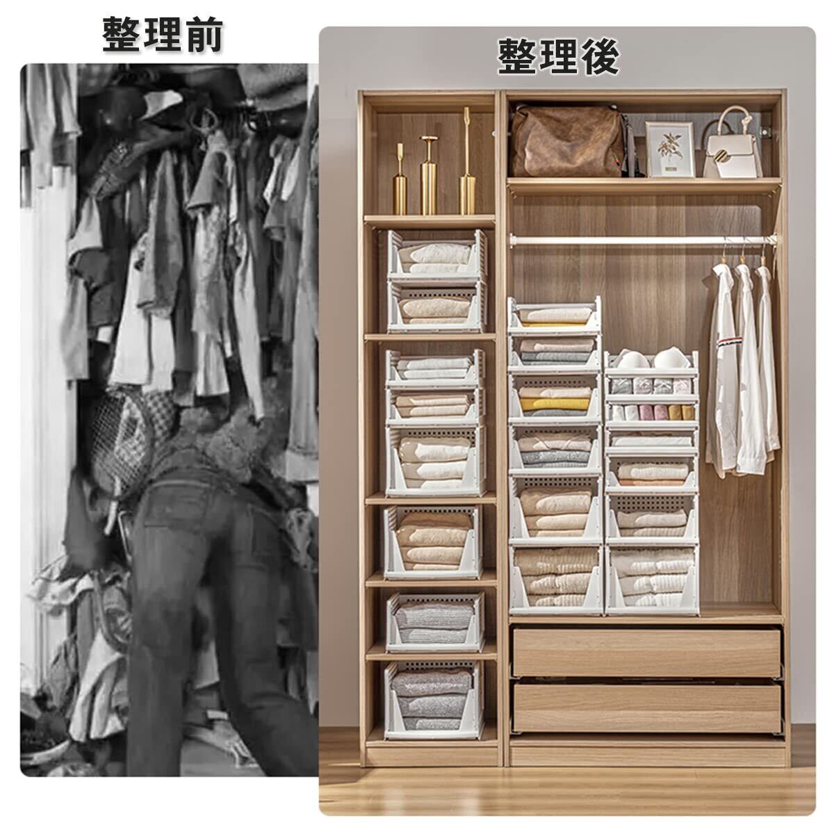【おしゃれなデザイン】シンプルで高級感がするホワイト・クリアは、家のどこに置いても違和感無し~タンスの中に使えたり、服を分類したり収納したりするとより探しやすくなります。洗面台の上に置いてもいろいろな物が収納できます。家事がスムーズになり、整理整頓の時間が短縮されます。(押し入れ、引き出し、ニット収納、タンス収納用)