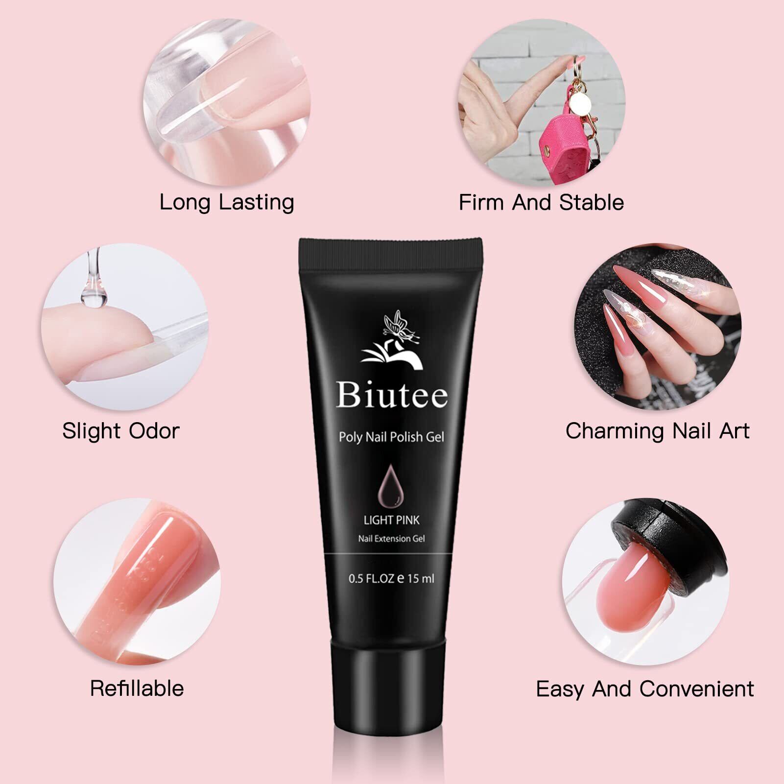 Biutee 長さだしジェルネイル 6点セット ポリジェル UV/LED対応 長さだしチップ 簡単に長さだし