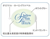 残浮力:-0.3g(F-7.5gのシャローフリークに0.6gのウェイトを追加した場合と同等の沈下速度です。)
