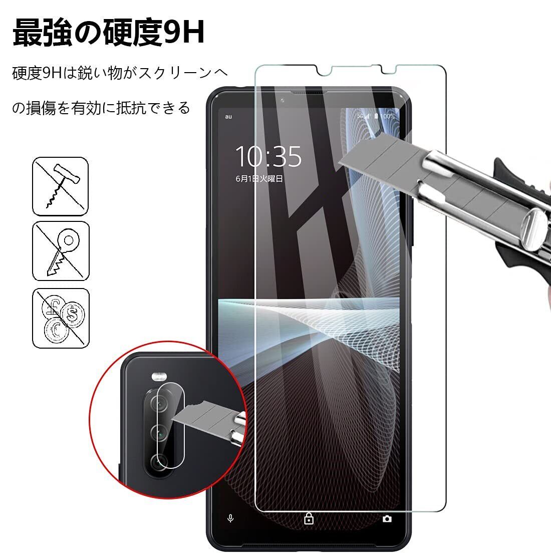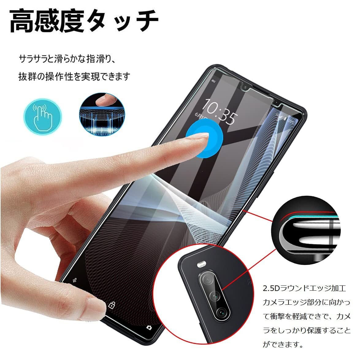 【対応機種】Xperia 10 III (SO-52B|SOG04) / Xperia 10 III Lite に特製ガラス保護フィルムとカメラフィルムです。高耐久性防汚のフィルムに特殊コーティングにより指紋や汚れが付きにくくなっています。超薄型保護フィルムは鮮明な99%の高透過率、自然な見た目です。