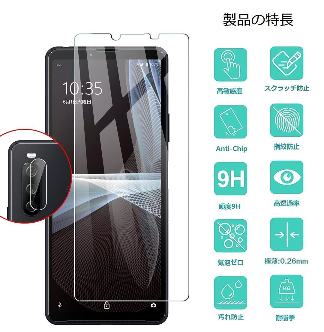 【4枚セット】Xperia10 III/Xperia 10 III Lite (SO-52B||SOG04) ガラスフィルム(2枚入り)+カメラフィルム(2枚入り)Kakuki Xperia 10 III/Xperia 10 III LIte レンズ保護フィルム 全面保護フィルム 硬度9H 高透過率 飛散防止 強化ガラス 耐衝撃 液晶保護フィルム 指紋防止 気泡ゼロ 自動吸着 貼り付け簡単