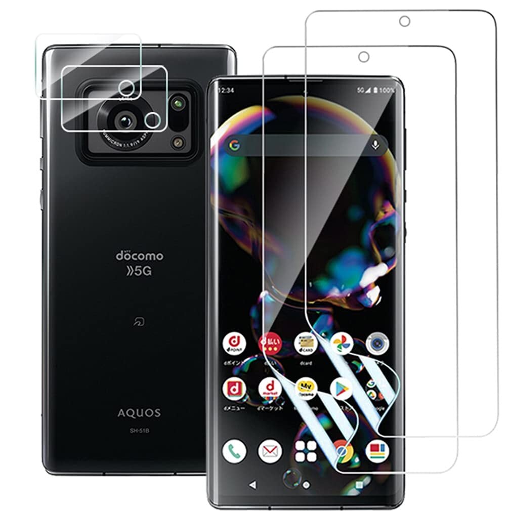 【セット内容】:対応機種:Aquos R6 SH-51Bに対応します。2枚 TPU素材保護フィルム+2枚カメラフィルム(ガラス)はお大事なスマホに全方位の保護を提供します。