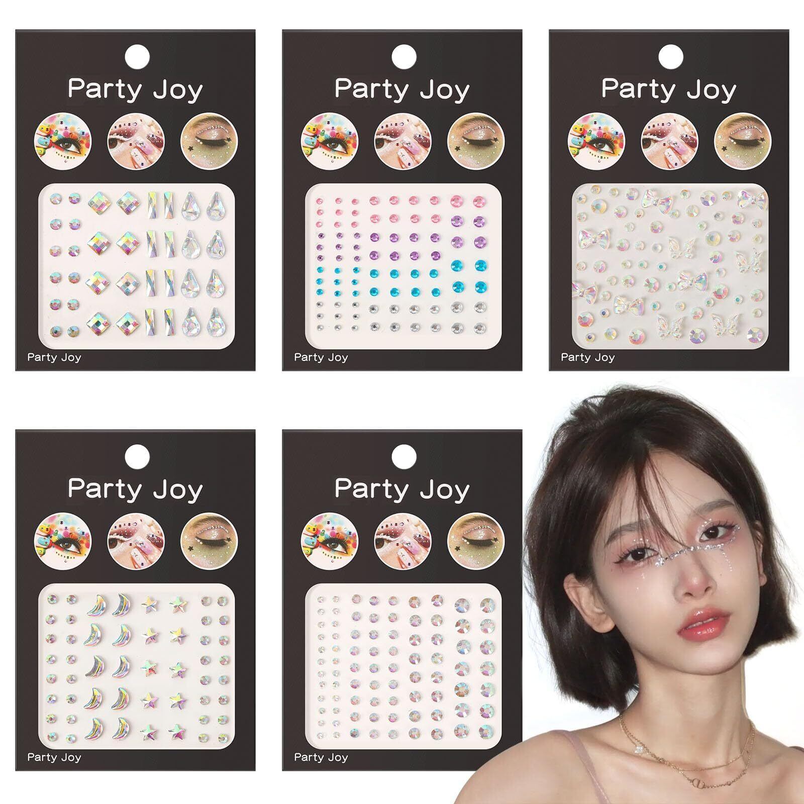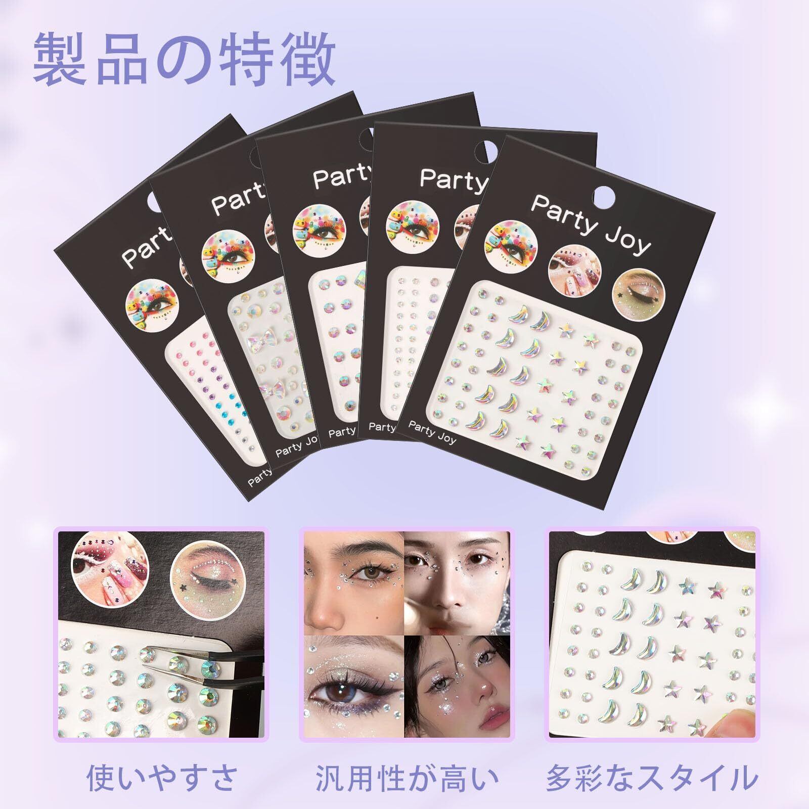Neiang ラインストーン シール 5枚セット フェイスステッカー 3D 光る ラインストーン デコシール 貼り付け可能 クリスタル キラキラ シール 顔面デコ デコパーツ 携帯電話装飾 DIY用品 手芸用品(月+星+蝶々+円形+涙+ネクタイ+ダイヤ+ラウンド)