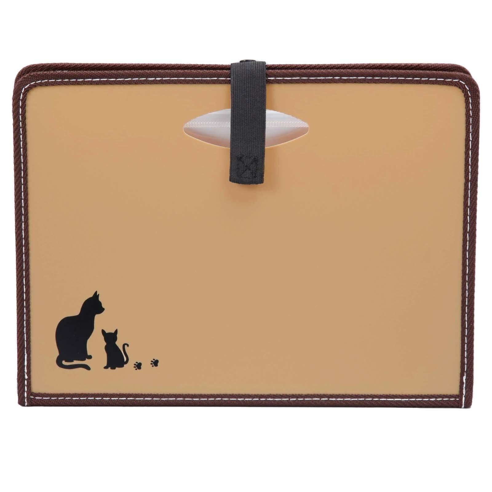 コモライフ 大容量ドキュメントボックス 【にゃんこ柄】 13ポケット ファイル ボックス 書類ケース 整理 整頓 収納ボックス 固定 持ち運び A4 サイズ 書類整理 書類収納 大容量 伸縮 アコーディオン式 オフィス
