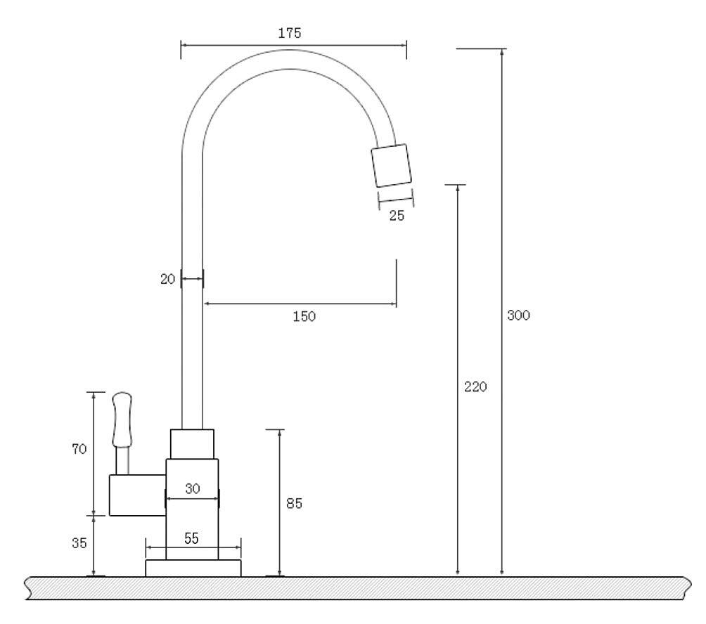 ■設置サイズ:高さ/30cm 吐水口長さ/15cm 吐水口高さ/22cm 取り付けネジ径/2cm「ネジ規格:G1/2」 取り付けネジ長さ/3.5cm