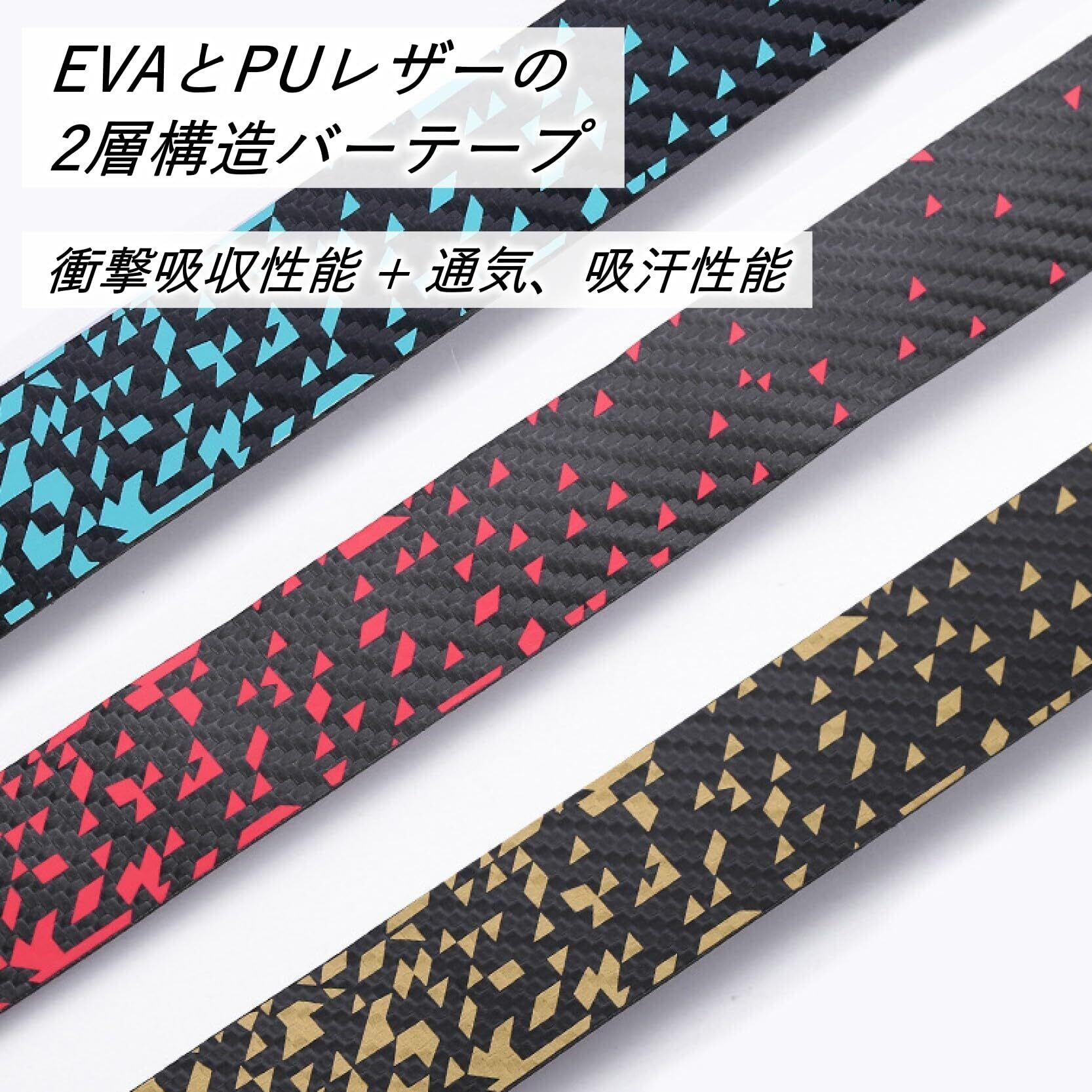 EVAとPUレザーの2層構造で衝撃吸収性に優れたバーテープは、地面からの衝撃を軽減し、手のひらの負担を軽くすることで長時間の乗車でも疲れにくくなります。一般の自転車やロードバイク、マウンテンバイク、ベビーカー、釣り竿など、幅広い用途に適しています。