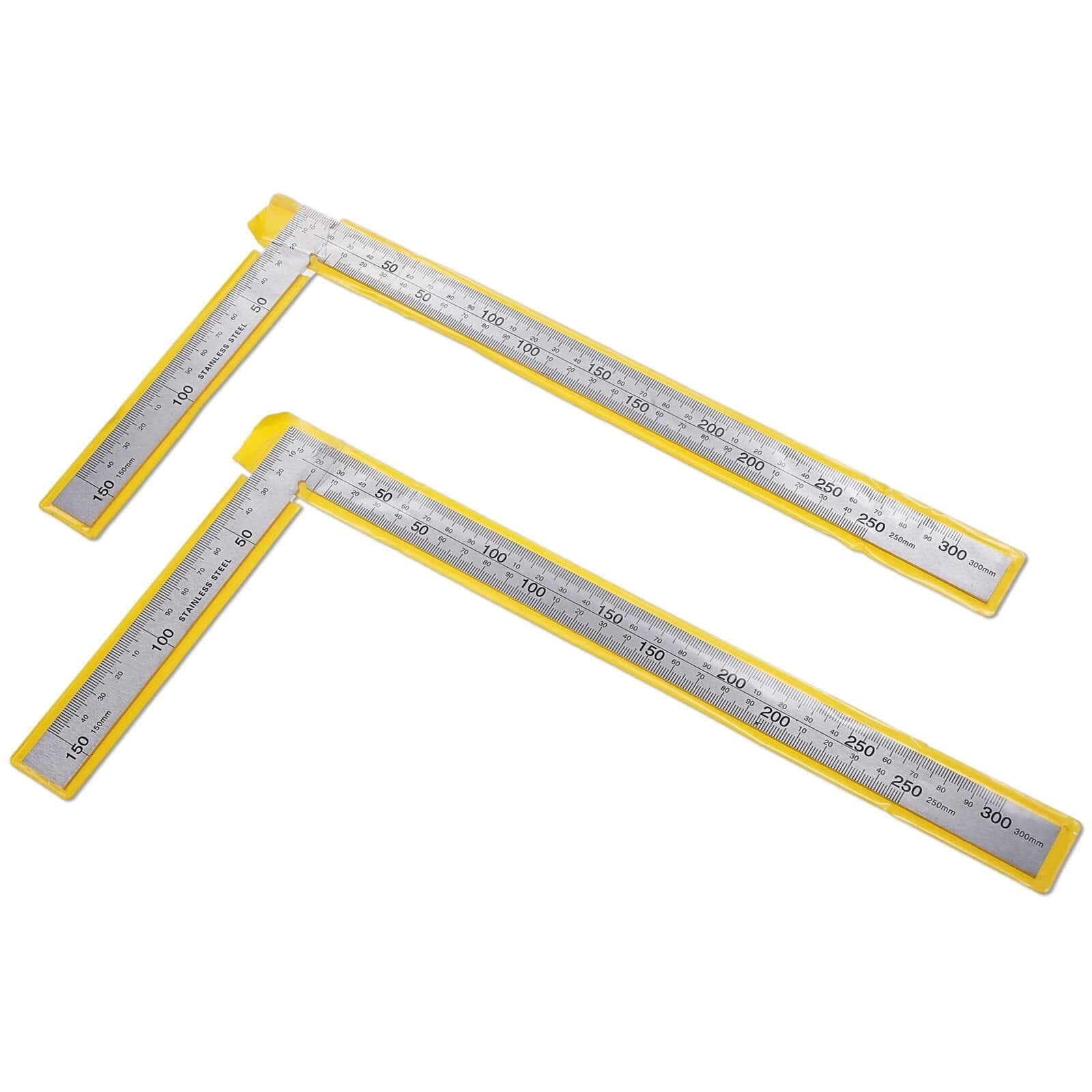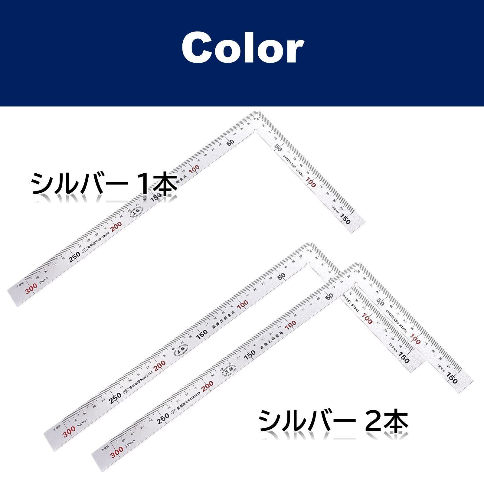 ルボナリエ 曲尺 矩尺 指矩 差金 直角 厚手 広巾 ステンレス 大工 カーペンター DIY 15cm 30cm (シルバー 2本 セット)
