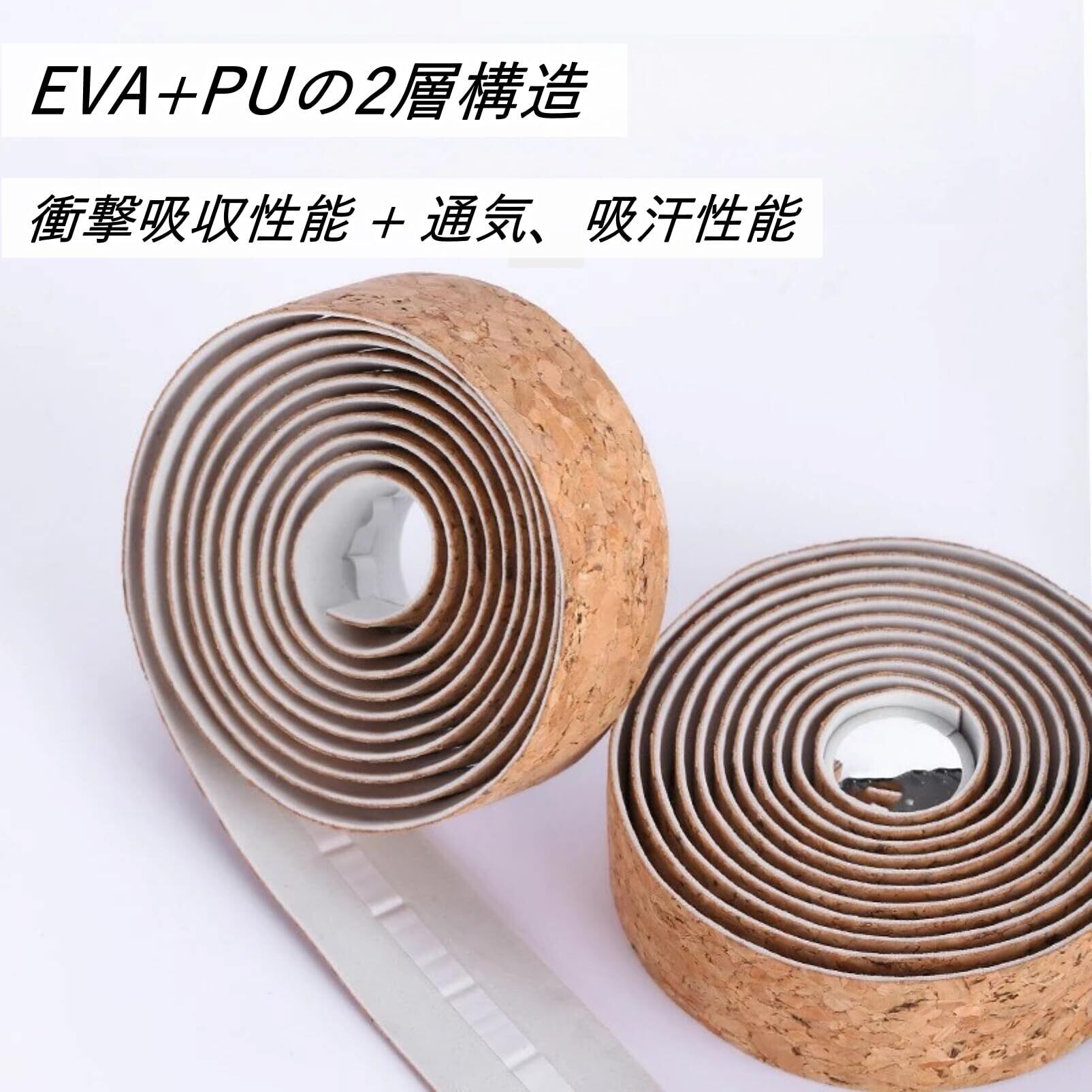 EVAとPUレザーの2層構造で衝撃吸収性に優れたバーテープは、地面からの衝撃を軽減し、手のひらの負担を軽くすることで長時間の乗車でも疲れにくくなります。