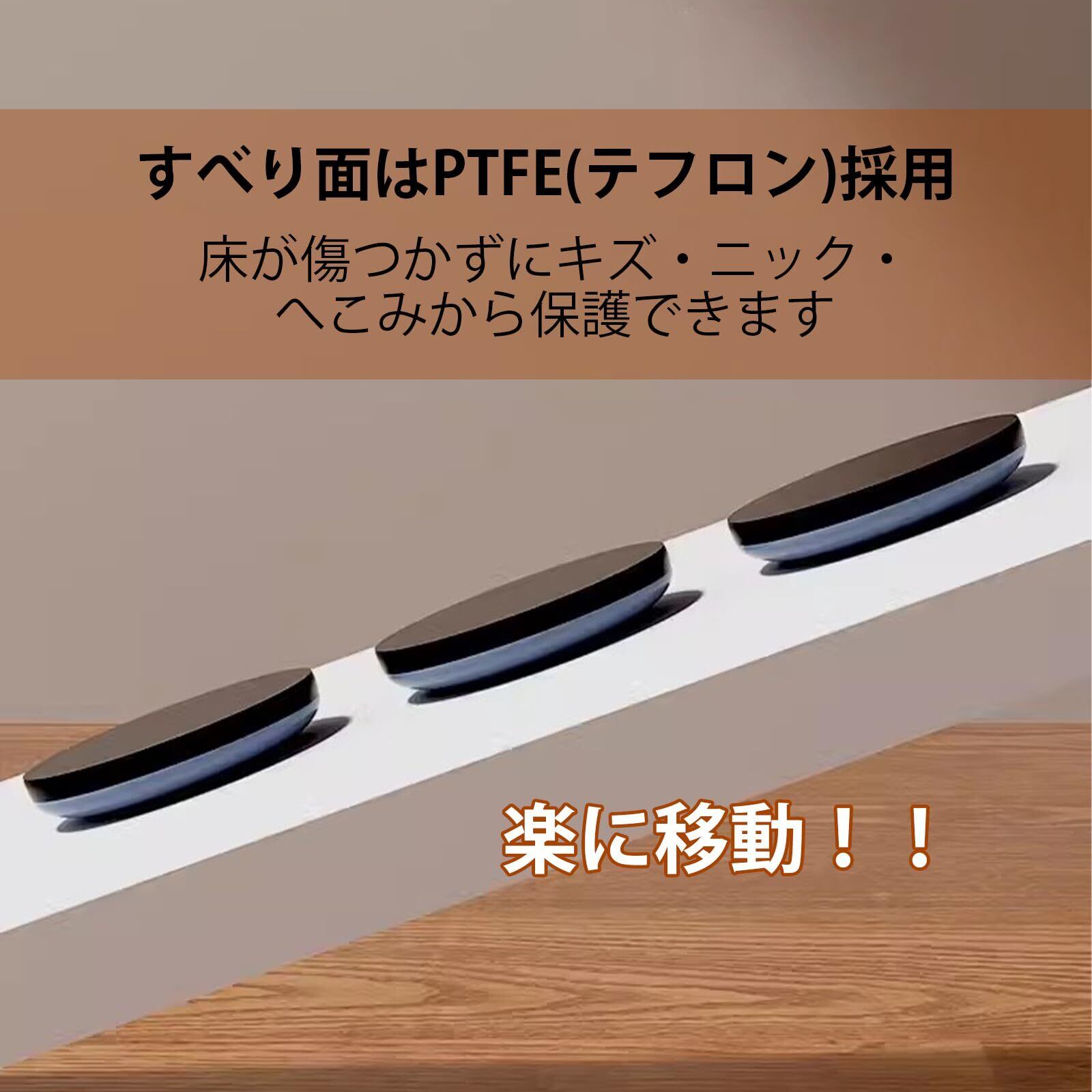 【高品質素材】PTFE(テフロン)製の滑り面を採用した家具スライダーは、滑り性、低摩擦性、耐高温性と耐食性が優れています。