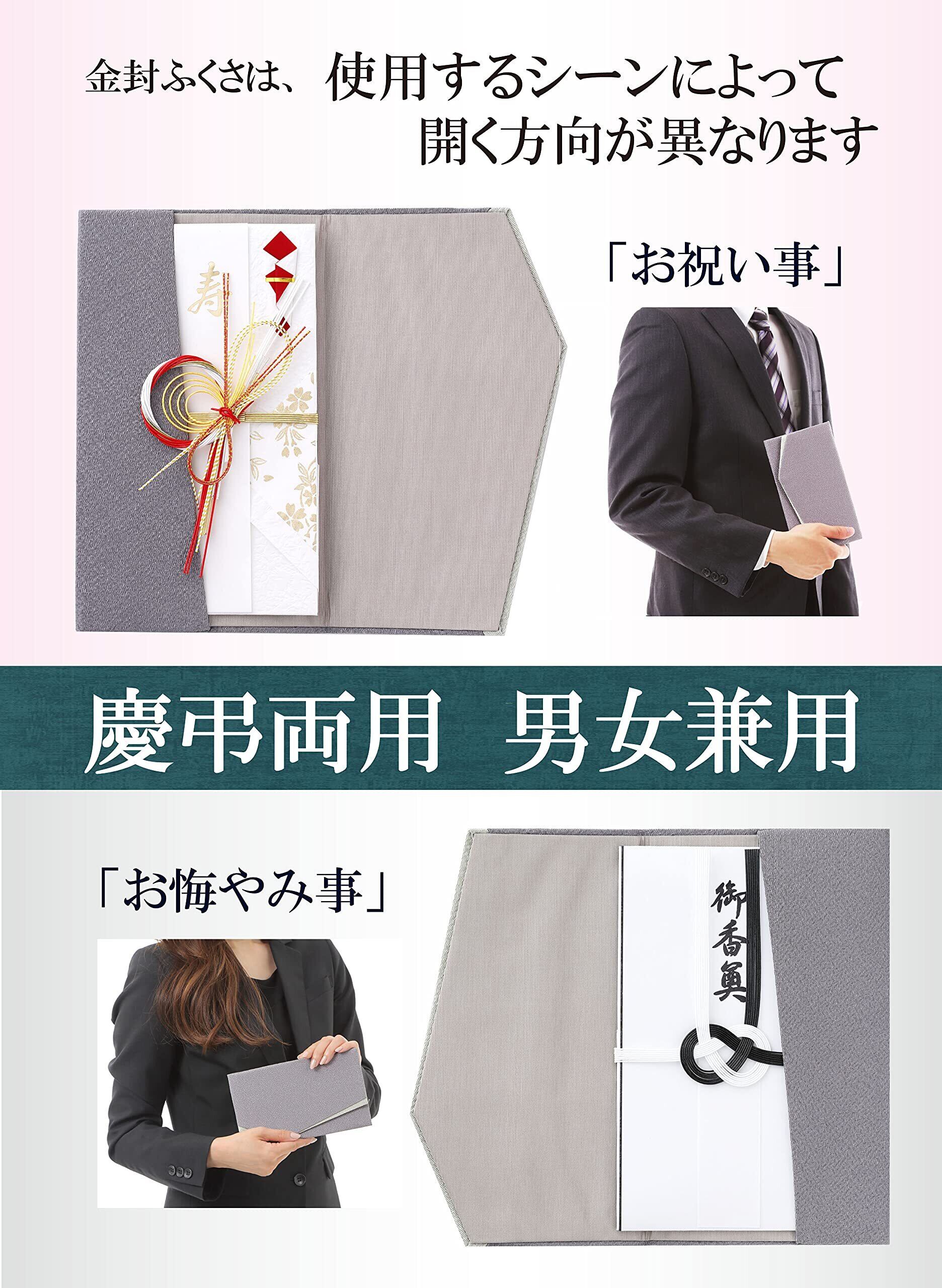【ふくさ 慶弔両用 金封ふくさ】 金封袱紗は、「お祝い事」「お悔やみ事」によって、開く方向を変えて使うことができます。冠婚葬祭のどの場面でも、相手への礼儀を示す、大切なアイテムです