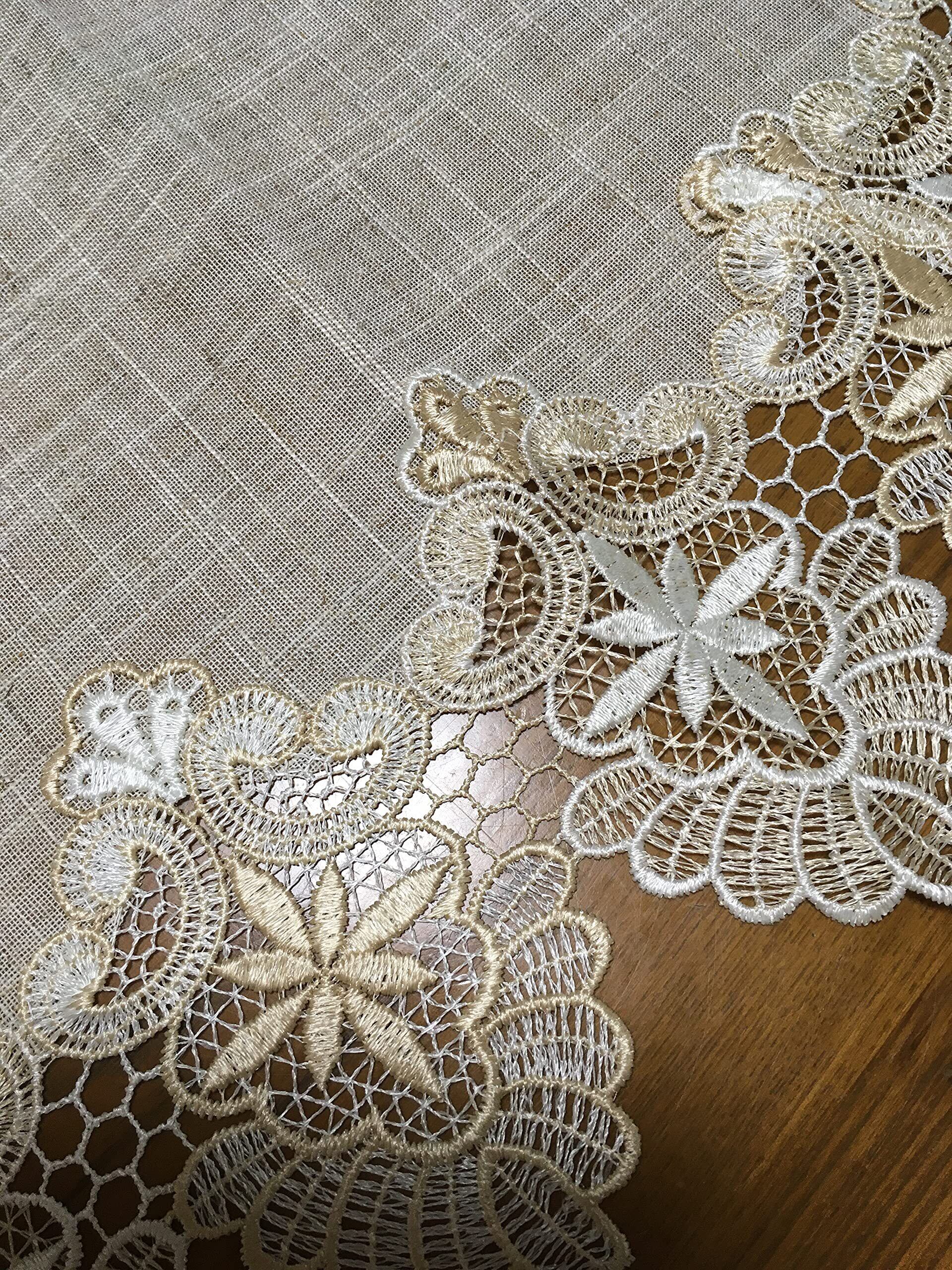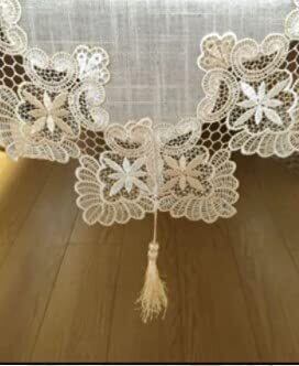 【特徴】美しいヨーロピアンレースの縁取りとタッセル付きのテーブルランナー
