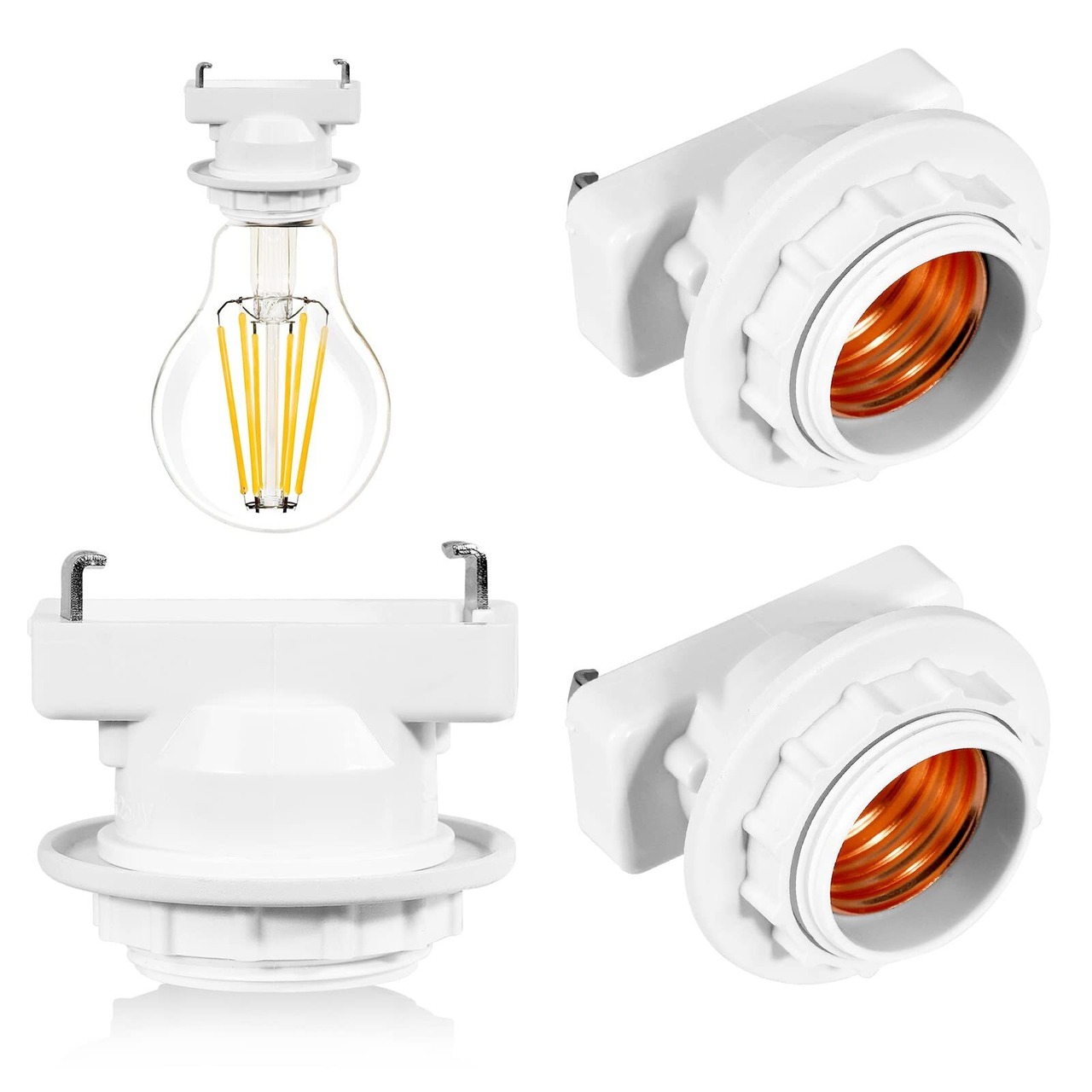 Aiwode 角型引掛けランプソケットE26口金、引掛シーリング用 電球ソケット ランプソケット、led対応 ペンダントライト、工事不要 取り付け簡単、PSE認証(白い、3個入り)